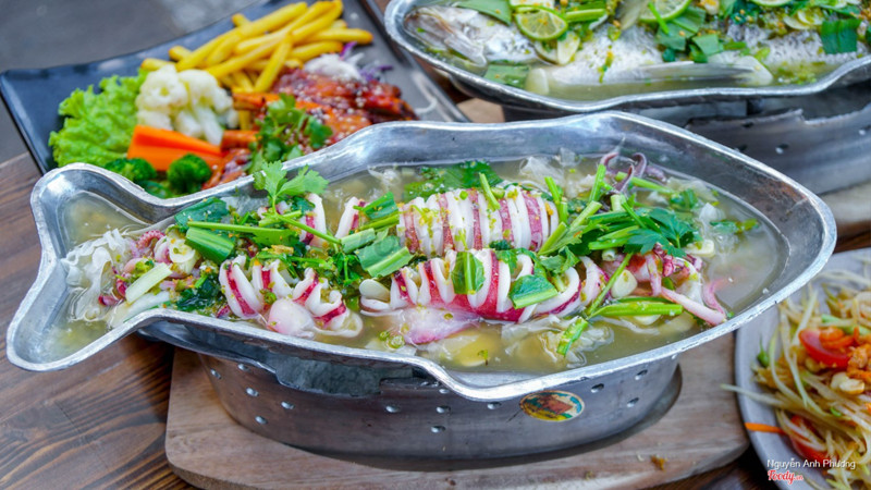 8.6Tuk tuk 3Quán này mới mở thôi nge bà con, ngon đúng điệu vị Thái luôn á. Nằm ngay đường mùng 2 tháng 9 nên dễ tìm nha, không gian 2 lầu, có cả trong nhà và ngoài trời nên mát lắm, tối tối lai rai là đúng điệu. Món ăn ở đây không quá cay, chua chua vừa hải, đúng chuẩn, thích mê lắm luôn. Thích nhất món lẩu, nước rất đậm đà, ngọt từ nấu, thanh thanh của vị mực, chua chua của vị thái, các bạn đến đây nhớ thử món này nhé. Ngoài ra có sụm cũng rất ngon, có nhiều loại sụm, có dịp mình sẽ thủ hết. ...Xem thêm