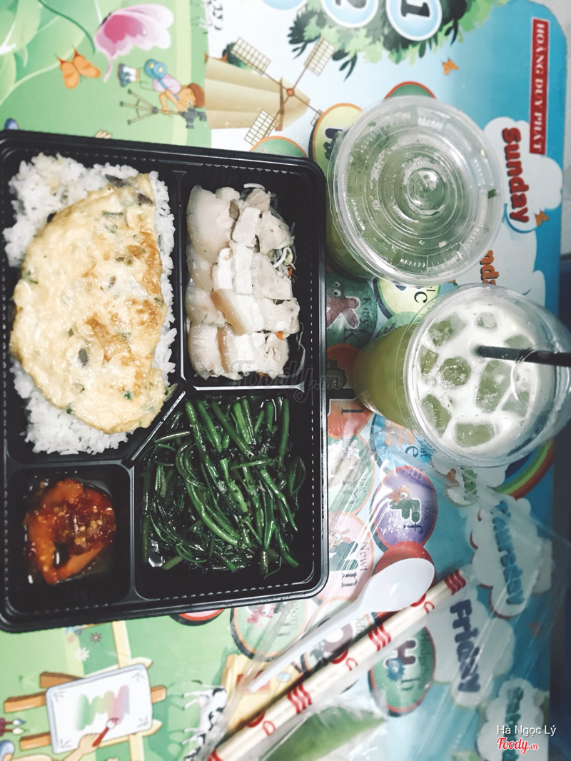 Trời mưa lớn mình gọi Now ship về, lại được giảm 25% nữa Phần cơm Một mình không cô đơn như menu giá gốc 30k Nhận hàng thấy khá bất ngờ Cơm bỏ trong khay nhựa sạch sẽ, chia ngăn rõ ràng Miếng trứng to đùng, cơm khá nhiều Thịt luộc dưa chua, mắm tôm, rau muống xào vừa miệng Canh bỏ hẳn hộp riêng, chứ bình thường mọi chỗ bỏ vào túi nilon, canh bí chanh còn nóng hổi Mình gọi thêm ép thơm, quán bỏ đá riêng nên k sợ bị loãng Phần như hình sau khi giảm 25% còn 38k thôi, ăn no căng, sẽ ủng hộ dài! ...Xem thêm