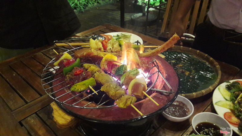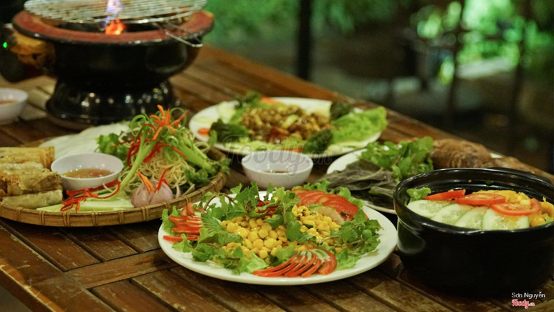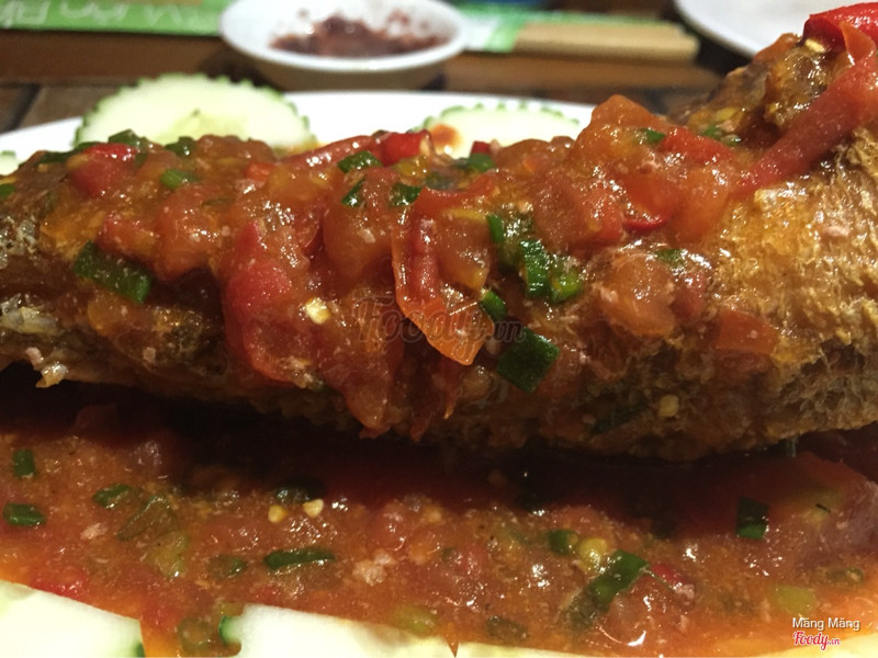 7.6Món ăn ngonNhà mình đi 9 người gọi 2 combo: 8 món ^^ Gói 4 + ĐB 😁 Món khai vị đầu: XÚC XÍCH ĐỨC KHOAI TÂY CHIÊN. Món này quá quen thuộc, không cần review nhiều :) Món2: Gỏi bò băm. Món này thì rau nhiều, thịt bò lẫn hết vào rau nên bạn nào chỉ thích đạm như mình thì không hứng thú mấy ;) bù lại rau tươi, không dập. Thịt băm ngon và thấm gia vị lắm. Món3: DỒI CỔ VỊT ( tâm điểm của đêm☺️ ) món này lạ lạ mà quen quen. Ai ăn dồi rồi thì cũng biết sơ món này có gì :) món ăn rất ngon và không có mùi hơi tanh như dồi heo đâu. Dồi làm thấm gia vị và mặn mà lắm. Bonus thêm cái đầu vịt cho ai muốn gặm ^^ Món4: nia mắm tôm. Y như bún đậu mắm tôm rứa mà hổng có cho bún thôi. 1 nia như vầy có: dồi heo, lòng heo, thịt heo giòn da, rau và đậu khuôn. Món này mọi người cũng nên thử nhe 😉 Món 5: cá lóc chiên sốt ớt. Khỏi nói luôn đi, món này ngon tuyệt vời, chỉ tiếc sao con cá hơi nhỏ. Gia vị sốt rất ngon và đặc biệt, cá lóc được chiên sau đó mới rưới sốt lên nên vẫn có độ giòn của lớp da cá và độ thấm của sốt ớt. Nói sốt ớt chứ không có cay đâu hĩ :) Món 6: cá leo nướng nghệ. Nge nhân viên nói thì cá leo cũng có họ vs cá bông lau đó ;) thịt cá béo nhưng không có ớn, được ướp và nướng với nghệ nên càng ngon nữa. Cá béo béo, lớp nghệ vàng ăn tê tê, hơi cay, gia vị mặn mà :) Món 7: gà lên mâm. Nhìn cái mâm gà là đã thèm rồi :) hổng cần nói thêm ha. Món 8: lẩu Thái. Không review nhiều, chỉ nói 1 câu là Ngon quá xá. Tuy mình không rõ là có đúng vị Thái không vì chả rành đồ ăn Thái lắm ^^ nhưng cảm giác đồ trong lẩu tươi, ngon là ok hết :) KINH DỊ NỮA LÀ : BILL CHỈ HẾT 600k/9 người. No tới khuya luôn ☺️ ...Xem thêm