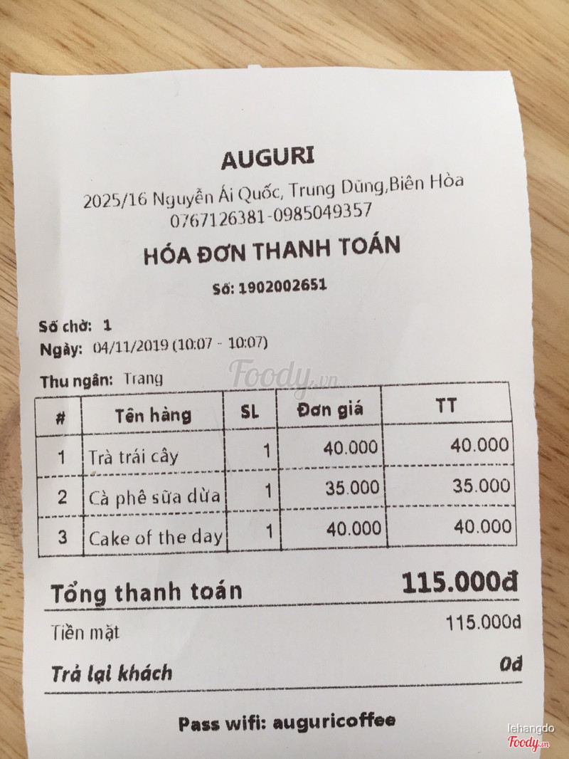 8.4Auguri - Coffee Crafters- Quán nằm trong hẻm nhưng dễ tìm, gửi xe miễn phí đối diện quán luôn nha. - Quán theo phong cách bày trí đơn giản, sáng sủa. Bức tường trước quán chụp hình lên nhìn hơi bị xịn :))) Có 1 tầng trệt, 1 tầng lửng và 1 lầu. Nếu thích nhìn các bạn nhân viên pha chế đồ uống thì có thể chọn ngồi ngay ở quầy pha chế. Còn mình chọn tầng lửng, nhìn thẳng xuống quầy pha chế cũng khá hay. - Đồ uống: ở đây chuyên về các loại cà phê hơn nên có vẻ món trà trái cây không hợp khẩu vị với mình lắm. Trà hơi đậm quá và hơi chua một xíu. Bánh phô mai ngon, đựng trong ly đế cao nhìn xinh xắn. - Nhân viên: nhiệt tình, chu đáo ...Xem thêm