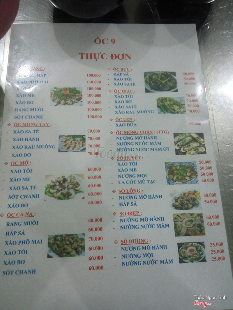 7.8Hải sản tươi ngon!Nghe đồn Ốc 9 lâu rồi mà mình chưa ăn lần nào. Sai xót chưa! Hihi...hôm nay review hẳn một bài để foody update để cả nhà ghé ốc 9 ăn hải sản tươi mới và ngon ngọt nhé! Mình đã mục sở thị các món như sau nè: ốc cà na cháy tỏi nước mắm, sò huyết xào me, sò lông nướng mỡ hành, nghêu hấp thái. Vì đi 2 người nên khả năng ăn của mình chỉ tới đó thui nha!!! Lần sau sẽ review thêm những món khác nha. Cảm nhận đầu tiên là quán đông lắm nha, phục vụ cũng nhanh nhẹn và lên món cũng nhanh vèo vèo luôn, hải sản bày ra tươi roi rói, giá mà có 2 cái bao tử thì hay biết mấy...hehe... Giá cả thì an tâm là giá bình dân nè, nghêu thì to mập,...hợp khẩu vị lắm...mau mau ghẹo qua Ốc 9 thưởng thức đi nha đại gia đình foody!!! ...Xem thêm