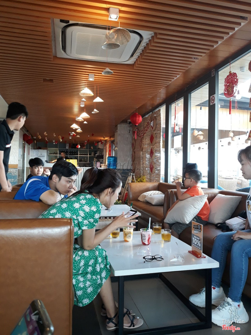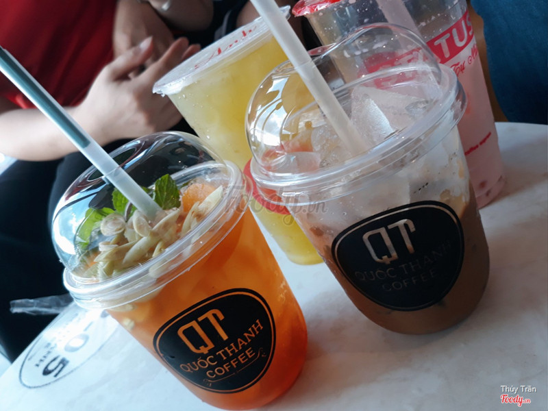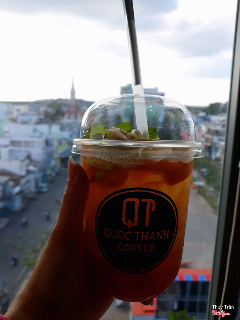 7.4Quốc Thanh CoffeeQuốc Thanh Coffee nằm tại tầng 6 của khách sạn Quốc Thanh. Có khu vực ngoài trời - chỗ này thì ngắm cảnh, tận hưởng gió trời vào buổi chiều tối khá thoải mái. Mình ngồi trong khu vực máy lạnh tại có trẻ em nữa. Không gian mát mẻ sạch sẽ, order nước và thanh toán tại quầy. Nhân viên phục vụ nhanh, có thẻ thành viên được giảm 10%, quét mã QR ngay trên mấy stander ở bàn. Mình order cafe sữa cho bạn còn mình món trà đào cam sả: pha chế ngon nha, vị đậm đà lắm. Bạn mình thì mua trà sữa dưới tầng trệt mang lên đây ngồi vẫn được nha. ...Xem thêm