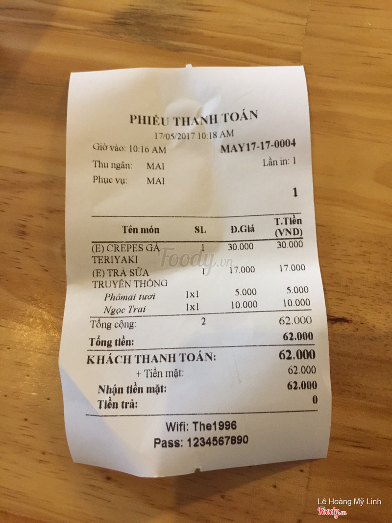 8.0The 1996 - Drinks & CrepesHôm bữa ghé đây tìm chỗ làm bài. Quán chia thành 2 gian tầng trệt với tầng 3. Lần trước mình ngồi tầng trệt rồi, nên làn này lên tầng 3 ngồi. Trên đây trang trí đẹp hơn ở dưới. Thích góc ngồi ngay cửa sổ, thoải mái, sáng, yên tĩnh, trang trí dễ thương nữa. Mình có gọi bánh crepes gà teriyaki, vỏ bánh ăn ngon, nhân cũng nhiều thịt gà ăn ngon luôn. Thấy quán đang hot cái topping phomai tươi nên cũng gọi thử. Trà sữa hơi ngọt, thạch phomai tươi ăn cũng được, mình không hảo lắm. Thạch ngọc trai giống như thạch trân châu trắng ở mấy quán khác nè. Nhân viên tư vấn nhiệt tình, thân thiện. ...Xem thêm