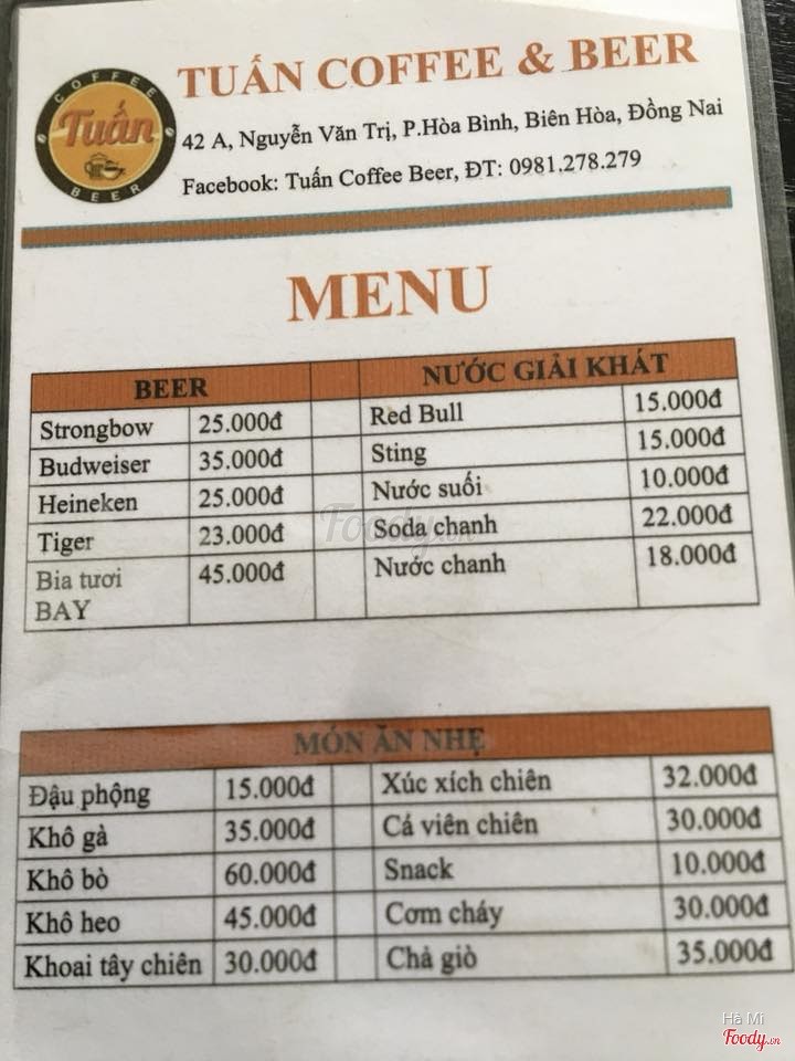 8.2Tuấn Coffee & BeerVô tình phát hiện ra quán này, quán có không gian mở rộng rãi thoáng mát, ngồi thoải mái, phục vụ nhiệt tình. Quán có món kem dừa Bangkok siêu siêu ngon luôn, kem dừa thơm, béo nhẹ, ăn kèm với xôi dẻo dẻo, có topping là bắp hạt, mứt chùm ruột, dừa khô, giá 1 phần full topping là 35k đó nghen. Ủng hộ quán hoài! ...Xem thêm