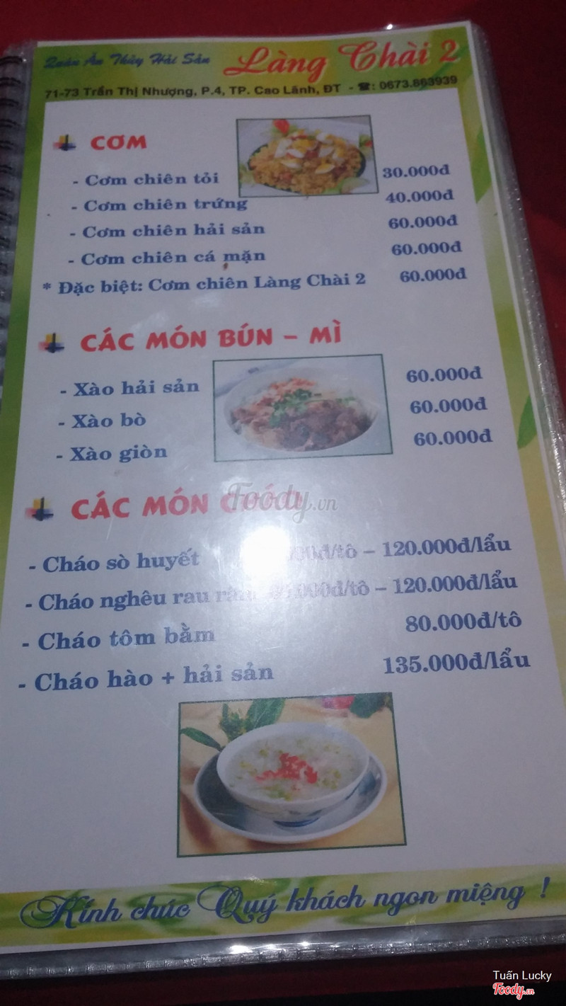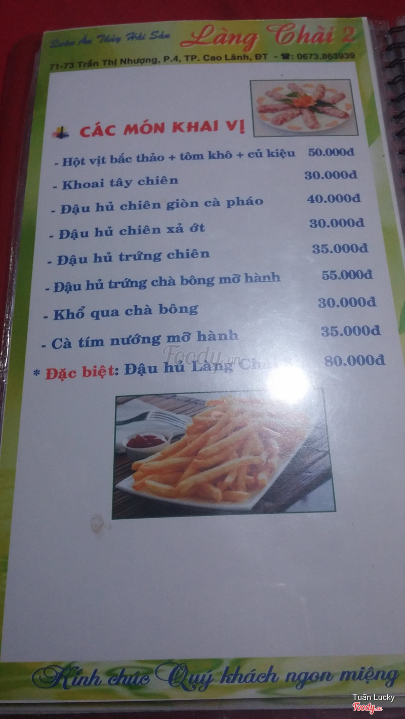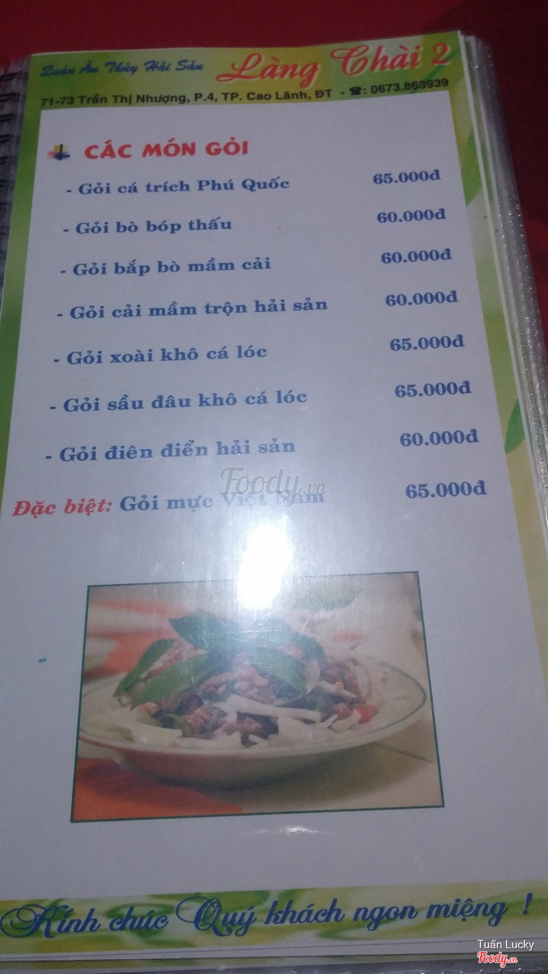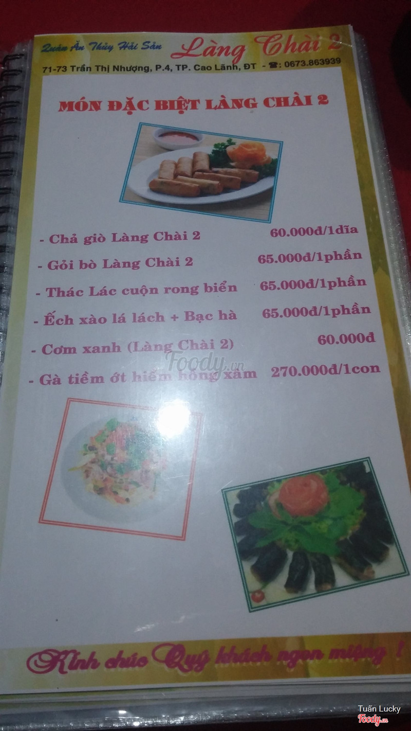 7.2Giá bình dân, rất hợp lýBuổi tối, đói bụng, cả nhóm lại nhờ taxi chỉ cho quán ăn, lần này là quán Làng Chài 2 cũng chuyên các món thủy hải sản Quán nằm mặt tiền đường Trần Thị Nhượng, không gian rộng với khu vực bàn ngoài trời và khu vực phòng riêng, cả nhóm chọn phòng riêng ngồi cho thoải mái Món ăn được so với giá, điểm + là phục vụ nhanh, kêu là có, món ăn không phải chờ lâu ...Xem thêm
