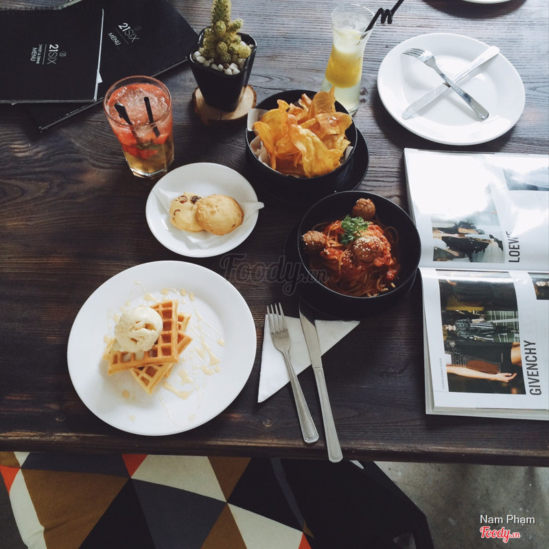 7.621six CafeQuán cafe sang chảnh có cả shop thời trang ở bên trong nằm ở phố Bà Triệu 😍 Quán được trang trí rất bắt mắt phù hợp với xu hướng hiện đại mà lại không bị đụng hàng với những quán cafe khác ❤️Vì thế nên quán có rất nhiều góc để sống ảo))) Nhân viên phục vụ nhiệt tình và khá chuyên nghiệp 👍🏻 Nhưng mình thấy đồ uống,bánh ngọt và đồ ăn ở đây thực sự chưa làm mình hài lòng lắm 😩 Giá của quán dao động từ 25-150k tuỳ từng món vì menu rất phong phú có cả từ đồ ngọt đến mặn😂 ...Xem thêm
