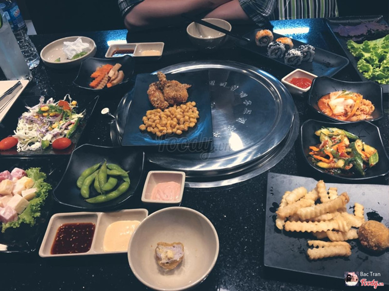 8.0Ngon và chất lượngĐồ ăn ngon, phục vụ tận bàn suốt bữa. Menu ổn, đội mình đi 5 tính tiền 4, tính ra có 244k/người (đã bao gồm bia, coke) ăn buffet vừa nướng vừa lẩu. Con tôm hùm là được tặng kèm, siêu nhiều cheese và thịt nên ăn hơi ngấy (nhưng ngon ạ). Tráng miệng có kem, hoa quả hơi đơn điệu. Tóm lại giá này thì quá ổn rùi (đội mình đi áp dụng chương trình đi 4 tính tiền 3). ...Xem thêm