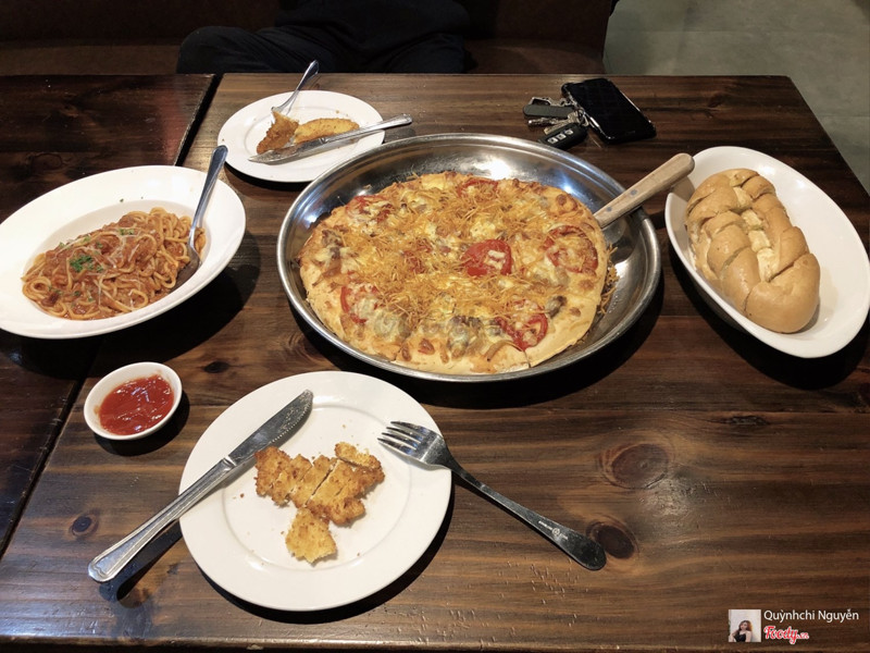 7.0Combo pizza kèm cocaHôm nọ cả nhà gọi combo này về ăn, thấy hợp lý quá đi nè. Combo đang được giảm 50% có hơn 3 trăm ngàn thui mà có 1 pizza cỡ L, 1 salat, 1 khay thịt xiên heo và gà kèm 1 mì ý bò băm, 1 bánh mì bơ tỏi nướng và thêm coca nữa. Giá quá hợp lý và pizza trong set ăn cũng ngon cơ, mình được lựa chọn giữa 5 loại pizza thì phải. Ship đồ thì là qua hãng nha, mà mình đặt trên Now để được quẹt airpay cho tiện. Combo phù hợp 4-5 người nè. ...Xem thêm