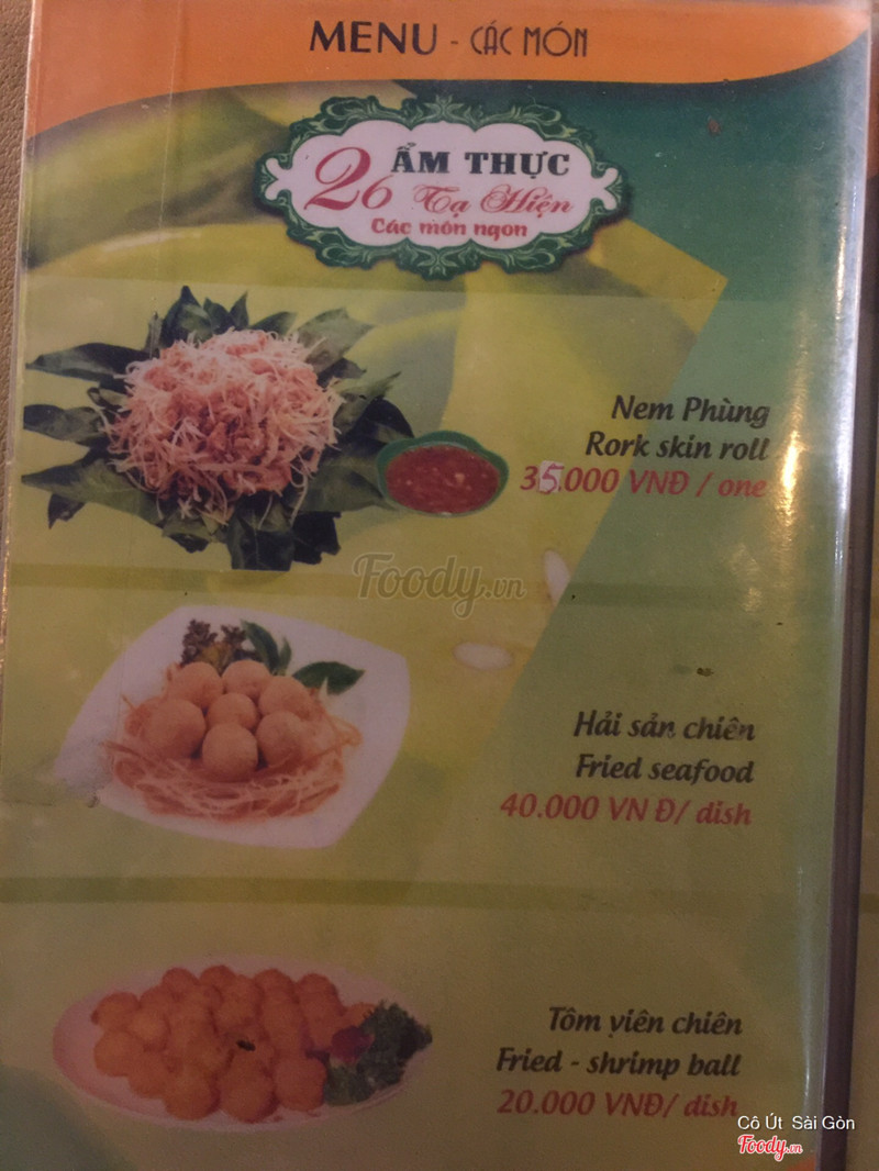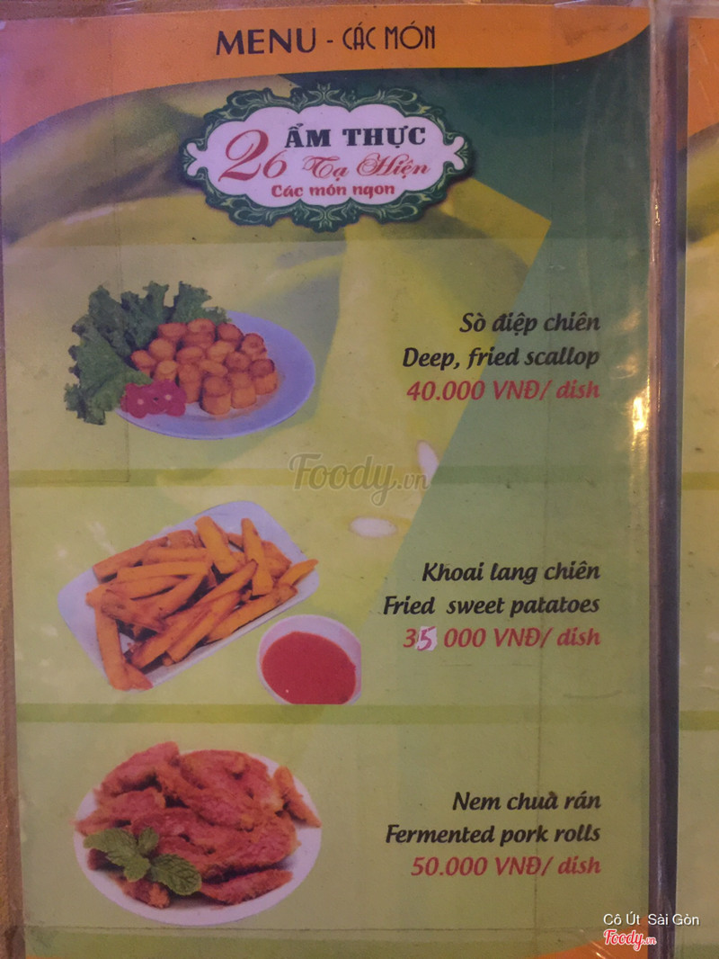 8.2Ẩm Thực 26 - Đồ Ăn NhanhNằm ngay con đường tấp nập các cửa hàng ăn uống, đa sắc tộc 😄 Không gian: vỉa hè thoáng mát 😛 Chất lượng: mình biết đên quán này nhờ món chân gà sả ớt rất ngon. Sau đó là khoai tây lắc trứ danh, vừa giòn tan vừa béo khác hẳn mấy kiểu mình từng ăn. Giải khát bằng nước sấu và atiso giòn , ko quá ngọt, đúng gout của mình. Có 1 món ko hợp vị là sữa tươi chiên giòn, ăn bở bở mà còn ngoài nóng trong lạnh nữa 😍Phục vụ: vui vẻ, dễ thương quá chừng ...Xem thêm