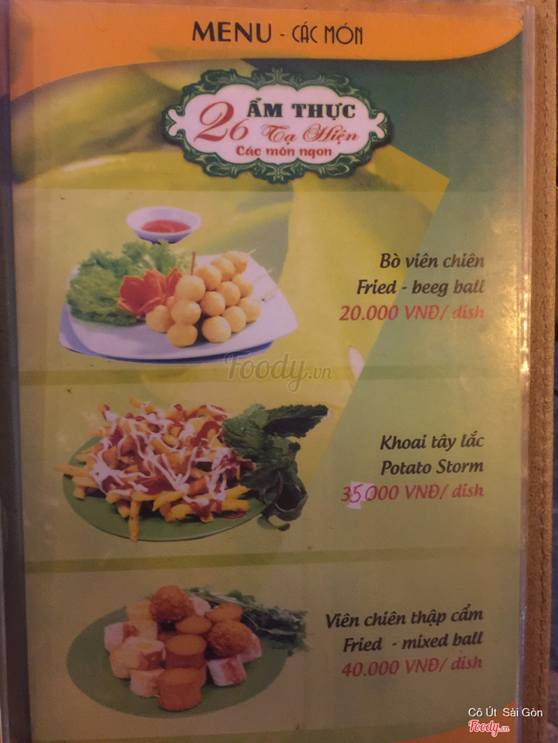 8.2Ẩm Thực 26 - Đồ Ăn NhanhNằm ngay con đường tấp nập các cửa hàng ăn uống, đa sắc tộc 😄 Không gian: vỉa hè thoáng mát 😛 Chất lượng: mình biết đên quán này nhờ món chân gà sả ớt rất ngon. Sau đó là khoai tây lắc trứ danh, vừa giòn tan vừa béo khác hẳn mấy kiểu mình từng ăn. Giải khát bằng nước sấu và atiso giòn , ko quá ngọt, đúng gout của mình. Có 1 món ko hợp vị là sữa tươi chiên giòn, ăn bở bở mà còn ngoài nóng trong lạnh nữa 😍Phục vụ: vui vẻ, dễ thương quá chừng ...Xem thêm