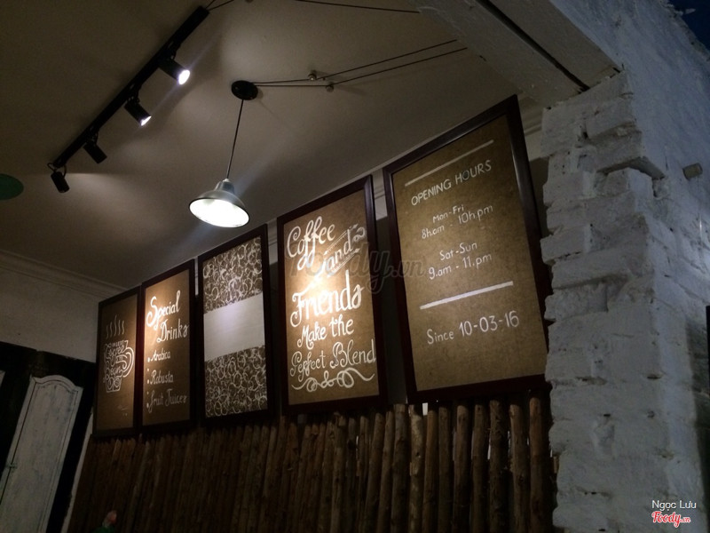 8.0Quán mang lại cảm giác ấm cúng và thân thiệnHôm mình đến là hôm sau hôm quán khai trương. Mình với hai đứa bạn đến cũng tầm muộn muộn gần 10h, tưởng là sắp đóng cửa thì bạn phục vụ sẽ kiểu mệt mệt nhưng mà hoá ra rất nhiệt tình và còn dễ thương nữa hehe. Sau đấy còn gặp anh chủ siêu cute, anh ấy thấy 3 đứa ngồi nói chuyện thế là cũng đến chào rồi còn ngồi chém gió cùng nữa. Đủ thứ chuyện trên trời dưới biển. Mà ảnh còn nói chuyện dễ thương không tả. Đứa bạn mình về còn đang phải tìm facebook để xem đã có người yêu chưa đây :)) Nhìn chung mình thấy không gian ở đây rất hợp cho nhóm bạn nhỏ nói chuyện thân tình hoặc ban ngày thì cho các bạn kiểu freelancer ngồi làm việc hoặc sinh viên đến học đều ok. Nhắc lại điểm cộng lớn nhất chính là anh chủ nhé hehe. ...Xem thêm