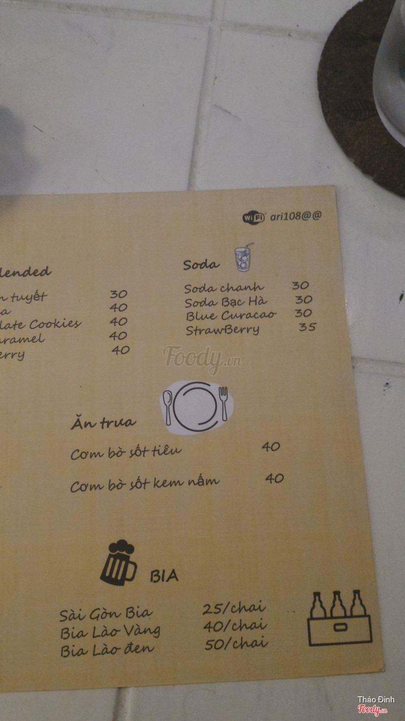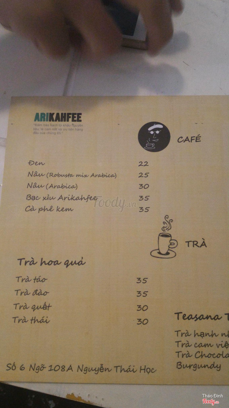 8.2Không gian yên tĩnh giữa lòng Hà Nội!Hôm nay nhờ foody nên khám phá ra được cái góc nhỏ xinh xinh này!❤️ 🚩 Vị trí: Quán nằm khiêm tốn trong con ngõ nhỏ yên bình trên phố Nguyễn Thái Học. Lần đầu đi sẽ hơi khó tìm một chút vì khuất sâu trong ngõ nhưng vào đến nơi rồi thì sẽ thấy khá là thích! 🏡 Không gian: Quán hơi nhỏ, bên trong có 2 gian kê được một vài bàn, còn có một bàn ngồi ngoài trời nữa. Nội thất decor đơn giản nhưng gọn gàng và selfie cũng hay ho lắm. Ari Không lớn nhưng vẫn đủ để tụ tập bạn bè, cảm giác khá ấm cúng, có thể yên tĩnh học bài, nghe nhạc... 👛 Giá cả: Cũng ở mức trung bình 30-40k như các quán coffee khác nên phù hợp với mọi đối tượng kể cả học sinh sinh viên ^^ đang trong thời gian khai trương nên ngoài discount thẻ E-card ra còn được giảm giá thêm khi checkin tại quán nữa nhé. Quá là ưng luôn ấy chứ! ☕️ Chất lượng: Café ở đây dùng café xay, rất "mộc" và sạch, vị thơm lâu và khá đậm đà. Hôm nay mình thử café kem và trà táo bạc hà. Café thơm, đậm vị, quyện với lớp whipping cream béo ngậy ở trên khá hài hòa. Trà ngọt thanh vừa phải, khá dịu và thơm mùi man mát của táo & lá bạc hà, bonus thêm vài lát chanh thơm thơm nữa 😘 👍 Dịch vụ: Nhân viên rất thân thiện. Anh chủ cũng nhiệt tình nữa :))) menu không có nhiều món nhưng kiểu "ít mà chất lượng" ý. Ở đây thì hơi xa nhà mình thôi nhưng có dịp hoặc hứng lên muốn xa khỏi chốn ồn ào thì nhất định mình sẽ quay lại ^^ ...Xem thêm