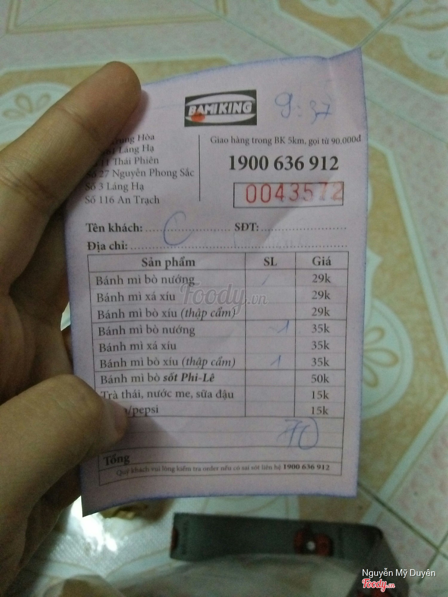 Ghi chú đặt bàn