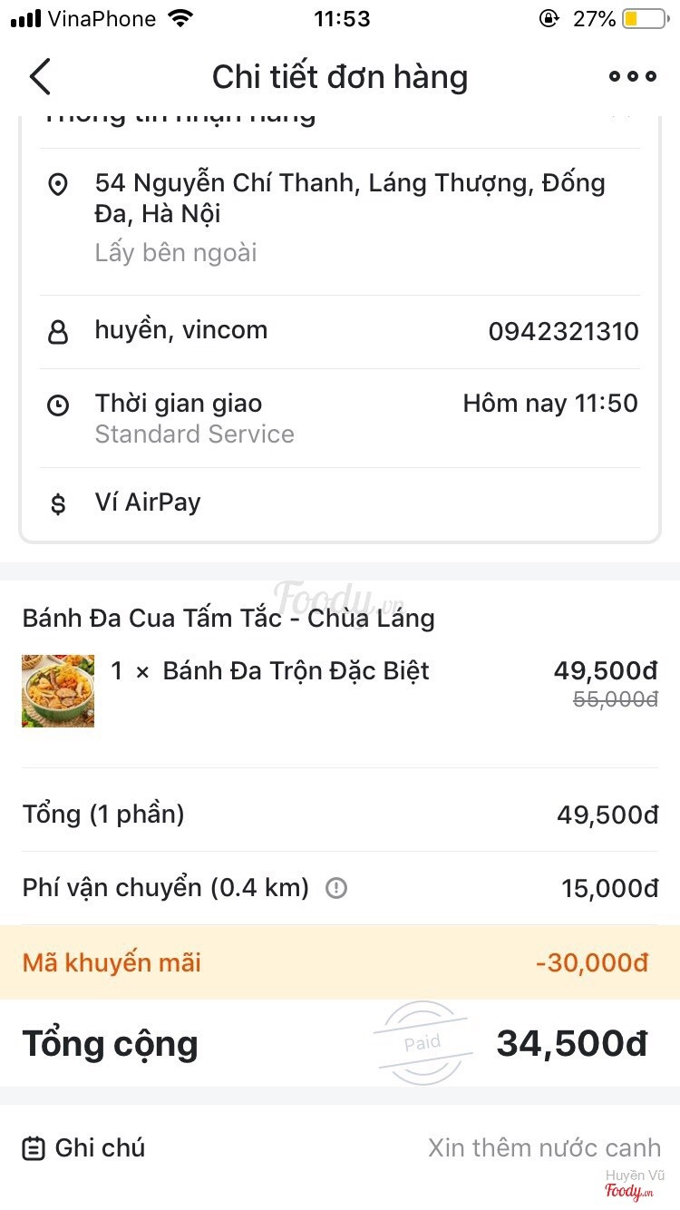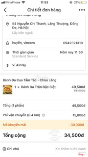 2.2TệTrưa nay mình order 1 suất bánh đa trộn đặc biệt, có note là xin thêm nước canh. Shiper giao đến cho mình 1 suất bánh đa khô khốc, k có nước trộn, k có quất. Mình đành phải lấy 1 bát con nước canh mà mình xin thêm đổ vào để thành bánh đa cua nước. 50k cho 1 suất bánh đa ít nước, mặn vài miếng topping. Quá tệ. Đây là lần đầu tiên mình ăn và cũng là lần cuối cùng! ...Xem thêm