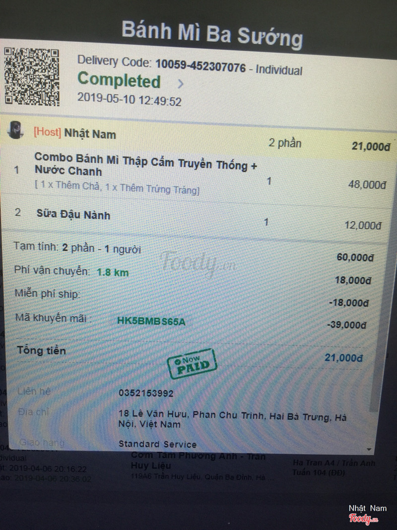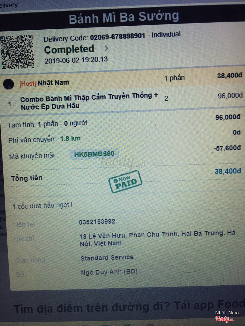 6.6Bánh Mì Ba SướngBánh mì Ba Sướng ngày trước mình đặt 1 số lần vì làm ở gần đó, từ Lê Duẩn ra Lê Văn Hưu nhanh, hay đặt cho bữa trưa ấy, được cái hay có mã giảm giá nên giảm được đáng kể, tính ra thì giá rất là rẻ luôn. Về chất lượng bánh thì mình cũng không đánh giá cao lắm, rõ ràng là không ngon, nhưng không tệ đến mức cạch hay như nào cả. Hơi bị nhiều chả quá, những thứ còn lại lại hơi hẻo, ăn bị bứ nhanh. Nước dưa hấu có 1 lần mình đặt uống cảm giác kiểu người ta xay cho dưa hấu nẫu uống vậy đó :))) sữa chua đánh đá chanh ngọt nghe vậy mà uống còn ok ấy. ...Xem thêm