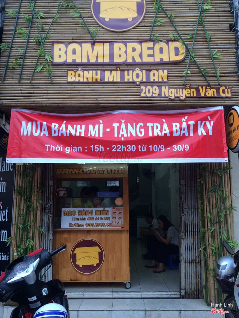 7.2Bami BreadBami bread mới thêm cở sở nữa ở 209 Nguyễn Văn Cừ, Long Biên. Quán trông cũng rộng rãi, sáng sủa hơn các cơ sở khác của bami. Menu của quán món đắt nhất là 25k có 2 loại là bánh mỳ hội an đặc biệt bên trong có pa tê, thịt xá xíu, rau, sốt ớt, dưa chuột.... Và bánh mỳ heo quay cũng 25k. Ngoài ra còn có bánh mỳ trứng 15k. Nhân ngày khai trương cơ sở mới nên bami bread chạy khuyến mãi đồng giá 15k bánh mỳ các loại cho khách đến ăn hoặc mua về. Và ưu đãi 30k 1 bánh 1 nước cho khách gọi ship về. Bánh mỳ hội an đặc biệt thịt đầy đặn, sốt ăn khá thơm và bánh thì nóng giòn. Quán dễ tìm, ngay mặt đường to, nhân viên thân thiện. ...View more