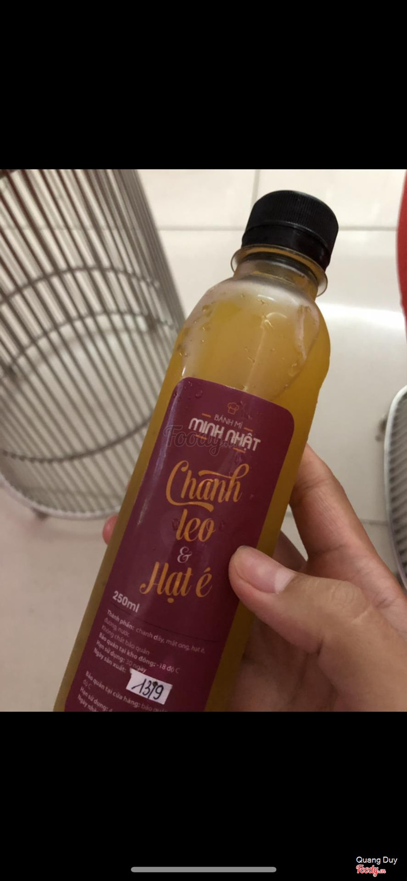1.0Bánh mìMình rất hay đặt Bánh Mì Minh Nhật Láng hạ ăn , mọi khi thì không sao . Hn minh đặt set bánh mì+ nước chanh sả thì thấy nước chanh sả có mùi hỏng. chả hiểu sao cho minh cái nước từ ngày 22. Ghi hạn 3 ngày sử dụng nhưng mình nghĩ nước uống tươi làm sao để được 3 ngày. Mà giá bánh mì ở Minh Nhạt ko hề rẻ. Đièu này làm mình k hài lòng ...Xem thêm