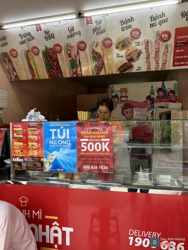 7.2Bánh Mì Minh Nhật - Láng HạM có ăn mấy lần ở đây rồi, nhận xét thì bò BBQ hoặc phô mai là ăn ổn nhất. Nước kèm theo có 3 vị để lựa chọn, nhưng m thấy nước ngọt quá , uống không ngon. Bánh mì giá khá cao nhưng hay có khuyến mãi khi mua combo bánh nước nên chấp nhận được. Đóng gói đẹp mắt, có nhãn mác, thương hiệu tử tế. Bánh đến tay vẫn còn ấm, bánh ép dẹp để làm nóng nhanh, m thì k thích như thế. Nói chung là có thể thử được, mua trên now giá tốt hơn mua ngoài. ...Xem thêm