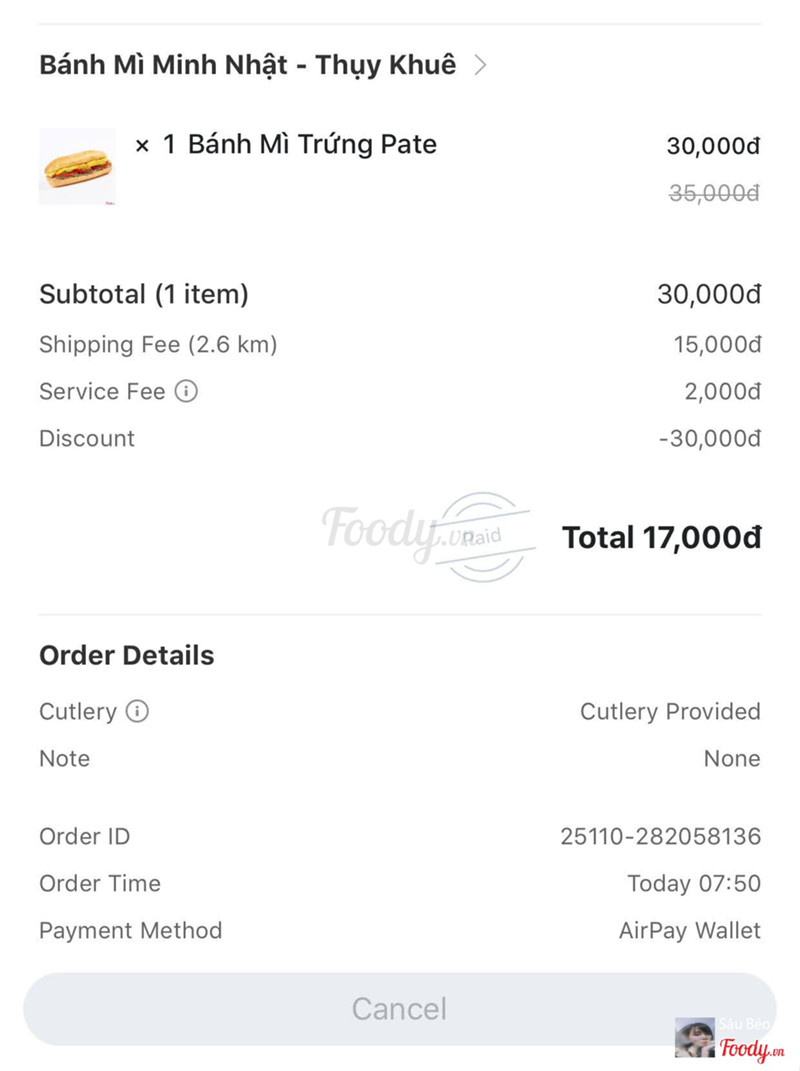 6.2Bánh mì Minh NhậtMình rất hay ăn BMMN ở các cơ sở luôn, và lần này ở đây là lần thứ 2 nhưng trải nghiệm mang tới khá là tệ. Anh giao hàng thì ok thân thiện, khu đường chỗ mình làm đường, chả biết a để xe ở đâu mà lúc đưa đồ cho mình là chạy bộ ra. Nhưng bánh chán cực kì ạ. Bánh mềm oặt. Không phải là do quá trình di chuyển vì bánh không còn tí hơi nóng nào, nguội ngơ nguội ngắt. Nhân trứng pate thì nhạt nhẽo. Nói chứ nó không bằng mình tráng trứng ở nhà. Mình sẽ không ăn lại ở đây. ...Xem thêm