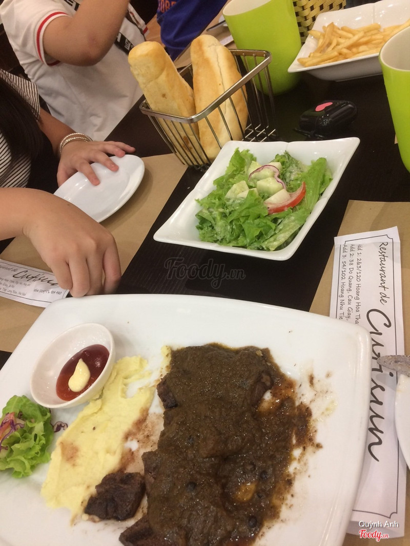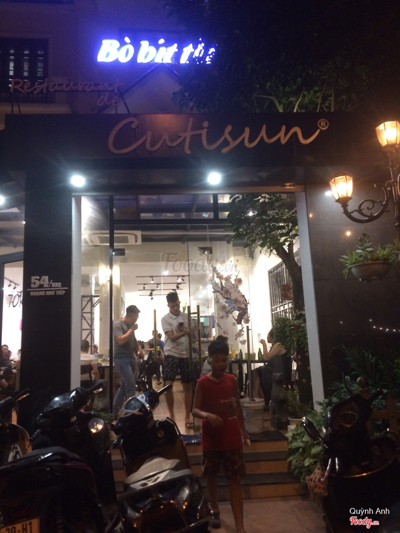 6.8Cutisun - Bò Bít Tết - Hoàng Như TiếpVị trí: đi từ đường mới hồng tiến mới mở vào thấy ngã tư gần nhất rẽ trái sang. Quán ngay bên trái đường đi qua kaitea. Ghi ngõ nhưng quán ở mặt đường luon nhé. Không gian: 1 tầng nhưng cx rộng phết. Ngồi đc nhiều nhưng đi ra đi vào hơi khó. Đồ ăn: gọi thịt bò lúc lắc, r thịt bò tái, salat rau quả, mỳ ý... hầu như món nào về thịt bò cx đều có khoai tây nghiền ở góc đĩa. Có bánh mỳ ăn kèm. Thịt bò ngon, có cả thịt cừu nữa. Cx đáng để thử. Giá cả: cx k rõ giá lắm vì k gọi đồ mà lúc đến toàn ng nhà gọi trc r. ...Xem thêm