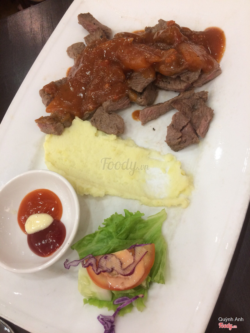 3.8Ko nên ănsteak siêu dai , trang trí xấu , bánh mỳ cũ . Như 1 miếng bò luộc sơ đổ nước sốt lên . Nhân viên ko hỏi khách ăn khoai tây nghiền hay khoai tây chiên . Sốt ketchup , tương ớt và mayone cho 1 chút xíu mà cũng chẳng biết chấm j ??! Quan trọng nhất là thịt bò quá chán ! Chưa ăn steak ở đâu chán như ở đây . ...Xem thêm