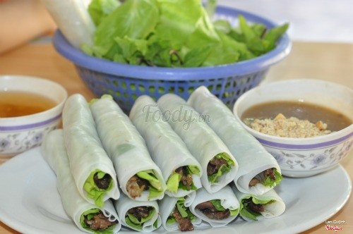 7.2phở cuốn hấp dẫnPhở cuốn thịt nướng ngon và lại rẻ nhé. bảnh phở ở đây khi rất mỏng mà lại ngon nhé, không lát cũng không khô quá. Thịt được tẩm ướp gia vị đầy đủ được nướng bằng than hoa. đến gọi món thịt được kẹp vào giữa. Mình thấy món này cũng khá được thông thường mình chỉ được ăn bánh phở tráng nóng thui chứ chưa ăn kẹp thịt nướng bao giờ cả. món này ăn kèm rau sống và phải có nươc chấm chua ngọt mấy đúng vị. nước chấm ở đây pha cũng không được ngon lắm, phục vụ cũng nhiệt tình và chu đáo. giá cả cũng phải chăng. ...Xem thêm