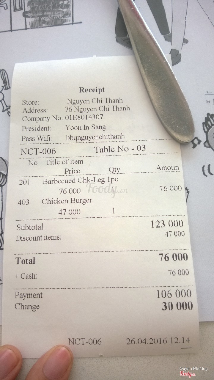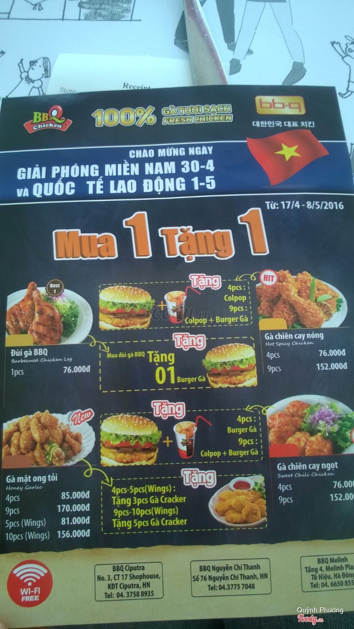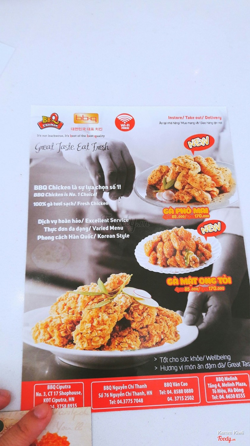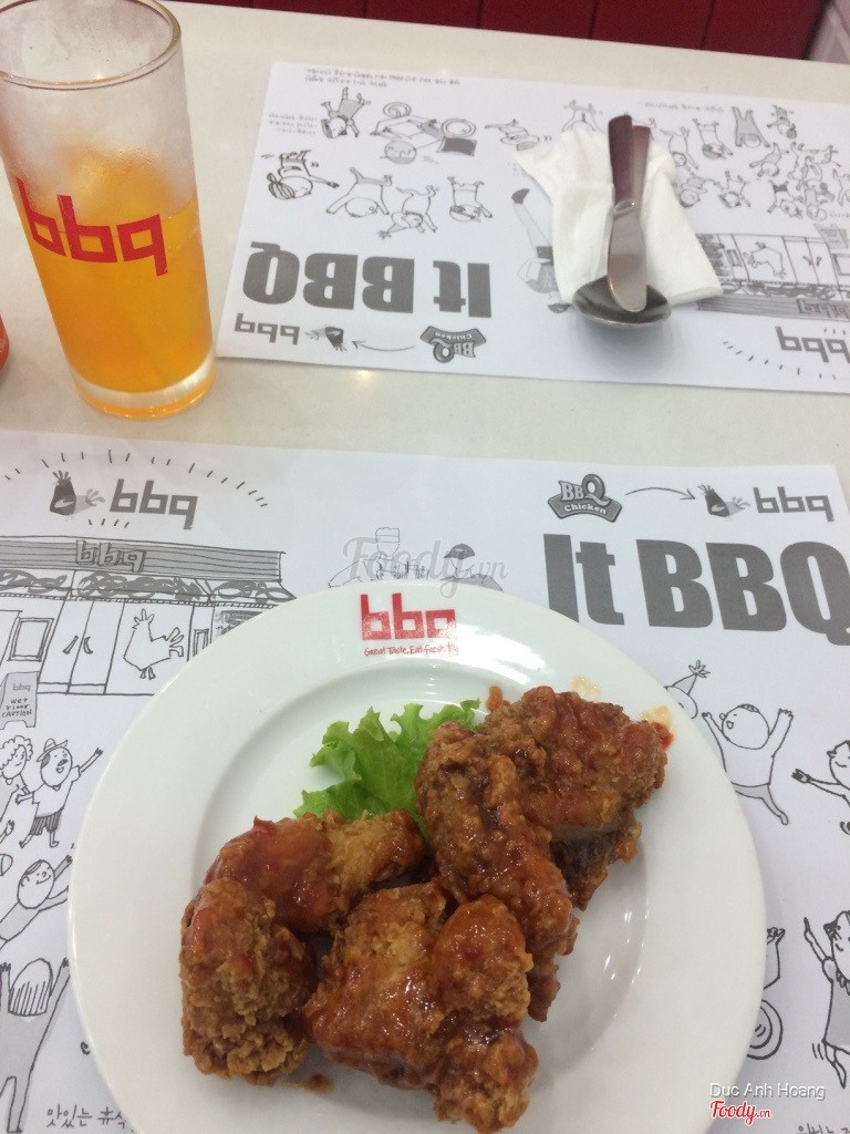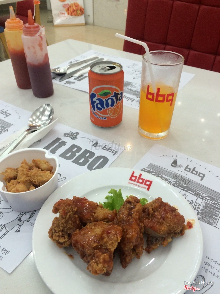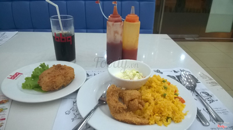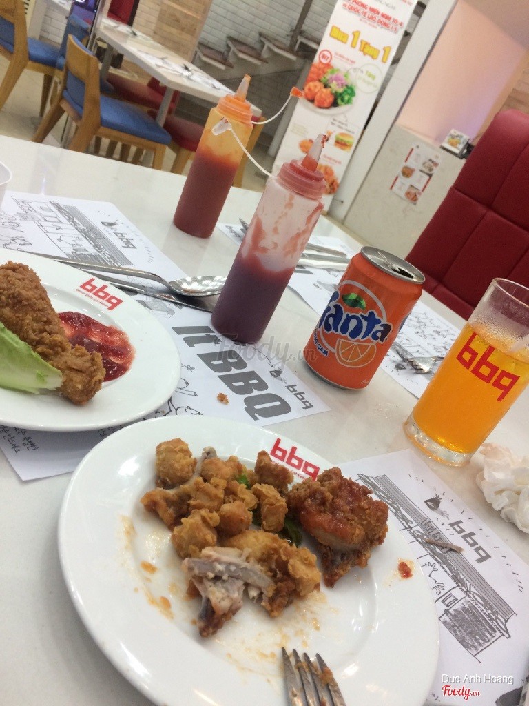5.6BBQ Chicken - Nguyễn Chí ThanhĐi ăn có một mình nên hơi buồn, gọi 1 suất cơm rang cách gà chiên giòn, thêm 1 gà truyền thống nữa. Chính ra món hấp dẫn nhất là gà cay nhưng trời nóng quá nên ko chọn. Quán vị trí đẹp mà vắng khách, ko có nhiều lựa chọn món như ở kfc hay lotteria, điểm trừ nữa là điều hòa chẳng mát chút nào nên ảnh hưởng đến tân lý khách hàng. Mong quán sớm khắc phục. ...Xem thêm