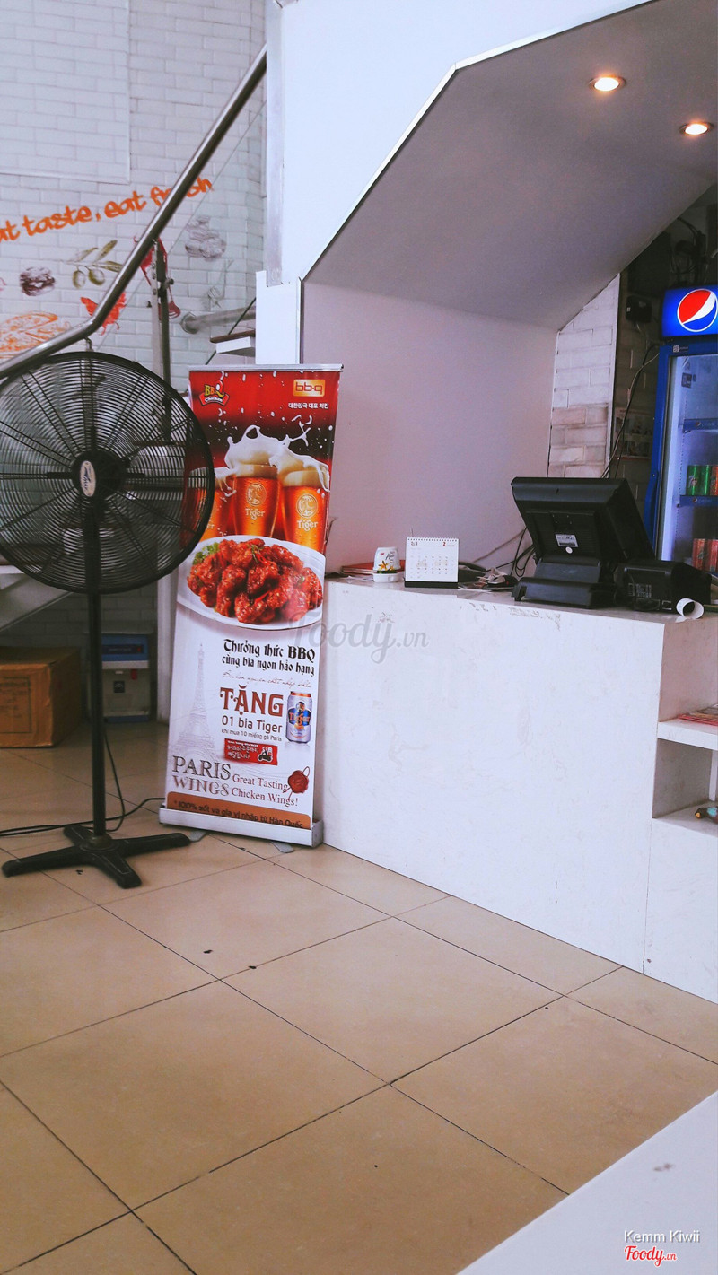 7.8BBQ Chicken - Nguyễn Chí ThanhQuán gà rán gần nhà * Giá cả : Giá hơi mắc so với các chuỗi gà rán khác như lotteria hay kfc nhưng không quá đắt so với papa chicken hay hansol * Chất lượng: Gà ở đây rất ngon ạ, tẩm ướp rất vừa miệng với nhiều vị khác nhau. Một đĩa cũng khá đầy đặn, khá thỏa mãn khi ăn gà ở đây. Cơm gà cũng rất ngon và vừa miệng nhé. Mình cũng rất thích ăn tokbokki ở đây, vị cay vừa phải, bánh gạo dẻo ơi là dẻo và chả cá cũng rất đầy đặn nhé. * Phục vụ: Đồ ăn lên hơi bị lâu đấy ạ. Các bạn phục vụ được cái dễ thương í * Không gian: Quán khá sáng sủa và sạch sẽ, view ra đường Nguyễn Chí Thanh khá đẹp, chỗ để xe rộng rãi lắm nhé. Nhưng không hiểu sao quán bị vắng, chắc tại bị đắt quá và không có các chương trình khuyến mãi hấp dẫn đc quảng cáo rầm rộ như các chuỗi khác ...Xem thêm