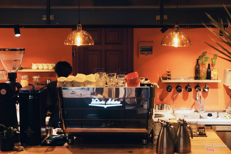 8.0Rất đáng yêu!Đây là một quán mình thấy trên Instagram quá nhiều rồi nên phải đi. Quán nằm trong phố Chân Cầm be bé cạnh Phủ Doãn, có tông màu khá ấm (cam), thiết kế đẹp, thông minh. Bên ngoài có vỉa hè lắp ghế nói chuyện, bên trong quầy bar có thể vừa nói chuyện vừa xem các bạn barista pha đồ uống. Đồ uống của quán, tuy nhiên, hơi đắt so với mặt bằng chung nhưng không gian rất dễ chịu bù lại cho khoản đó. Có nhiều bàn có thể làm việc được, nhạc khá hay nhưng vặn vừa phải, đủ tạo không khí thôi. Trang trí cũng đẹp nên mình khá thích. Cuối cùng thì nhân viên lịch sự, training tốt nhưng không tạo cảm giác fake. Trong ảnh mình gọi bạc xỉu, nếu ai không uống được cà phê thì có thể gọi ít cà phê nhé. Sữa Mộc Châu ngòn ngọt uống riêng cũng rất thích. Đồ uống của quán tầm giá 35-55-70k. Quán chuyên cà phê pha máy nha. ...Xem thêm