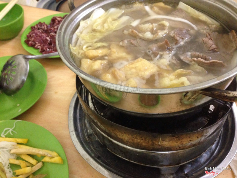 6.8Bò Nhúng Dấm 999 - Thi SáchMùa đông ăn lẩu là sướng nhất. Nhìn bề ngoài quán cũng ko có vẻ gì là đẹp nhưng đồ ăn lại ngon một cách đáng ngạc nhiên. Nhà mình gọi 2 nồi lẩu cùng thịt bò tái & chín, cuống tim, rau, đồ cuốn, khoai lang kén & trà đá, tổng thiệt hại khoảng 100k/ng. Nước lẩu có vị chua ngọt rất ngon miệng làm cả nhà mình ăn ko còn 1 giọt. Ngoài ra quẩy ở đây cực kỳ to & giòn, hơn hẳn mấy loại quẩy ăn phở. Bù lại, rau khá ít, chỉ có đúng cải thảo để cho vào lẩu, còn lại là xà lách, rau mùi để cuốn thịt. Nhân viên nhanh nhẹn, phục vụ tốt. ...Xem thêm