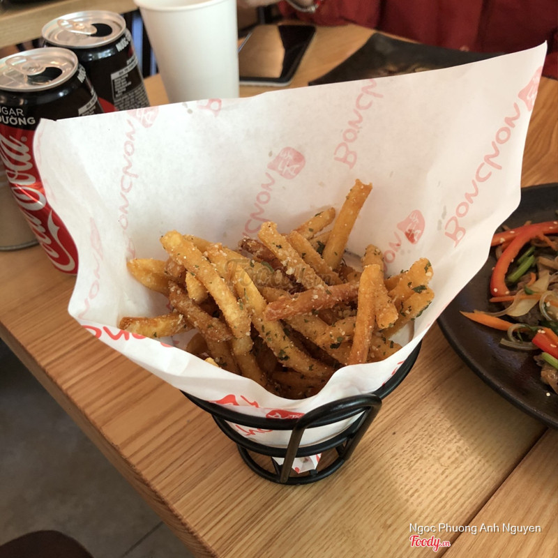 7.0Bồn Chồn 🙃Bonchon hay còn được biết đến với cái tên thuần Việt là Bồn Chốn vốn chẳng xa lạ gì với các chân chạy "đạo Thái Lan" 😂. Hồi căng bạt ở Nhà Thờ hồi hộp, trông chờ lắm. Mà đến tận khi mở thêm cơ sở ở***mới có dịp qua ăn. Không gian ở đây cũng be bé như bên Nhà Thờ, được cái có chỗ để xe. Nhân viên không niềm nở lắm, hơi thiếu kiên nhẫn khi khadch chọn món nhưng vẫn ok. Trên tầng thì nhân viên nhiệt tình hơn. Ăn thử nên gọi 2 chai strong bow + 3 món khoai tây chiên lắc mùi tây, bibimbap thịt bò và set cánh 8 miếng. Khoai chiên bị sượng và vị mùi tây không thơm. Gà rán chọn 2 loại sốt tỏi phi & sốt cay. Vỏ chiên giòn rụm, thịt bên trong vẫn ẩm mềm & điểm cộng là không bị mặn như bên Thái. Bibimbap ngon nhất, khá đáng thử. Cơm tơi, đậm đà, các loại nguyên liệu đầy đặn và gojuchang thơm không quá cay. ...Xem thêm
