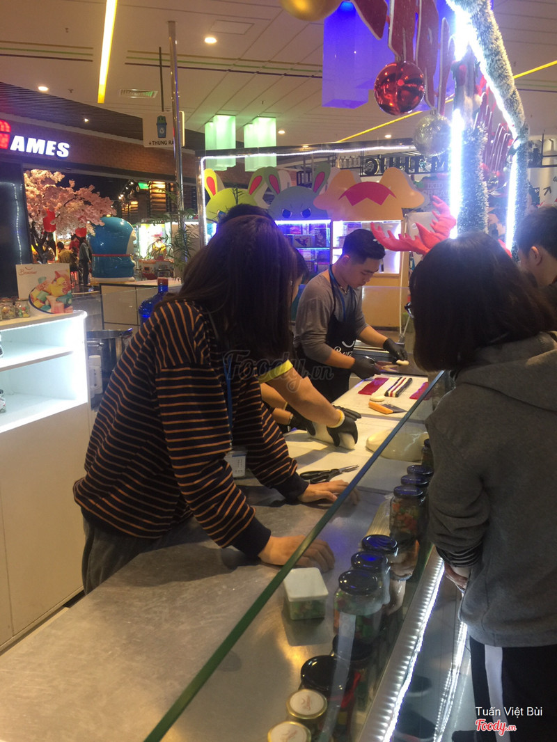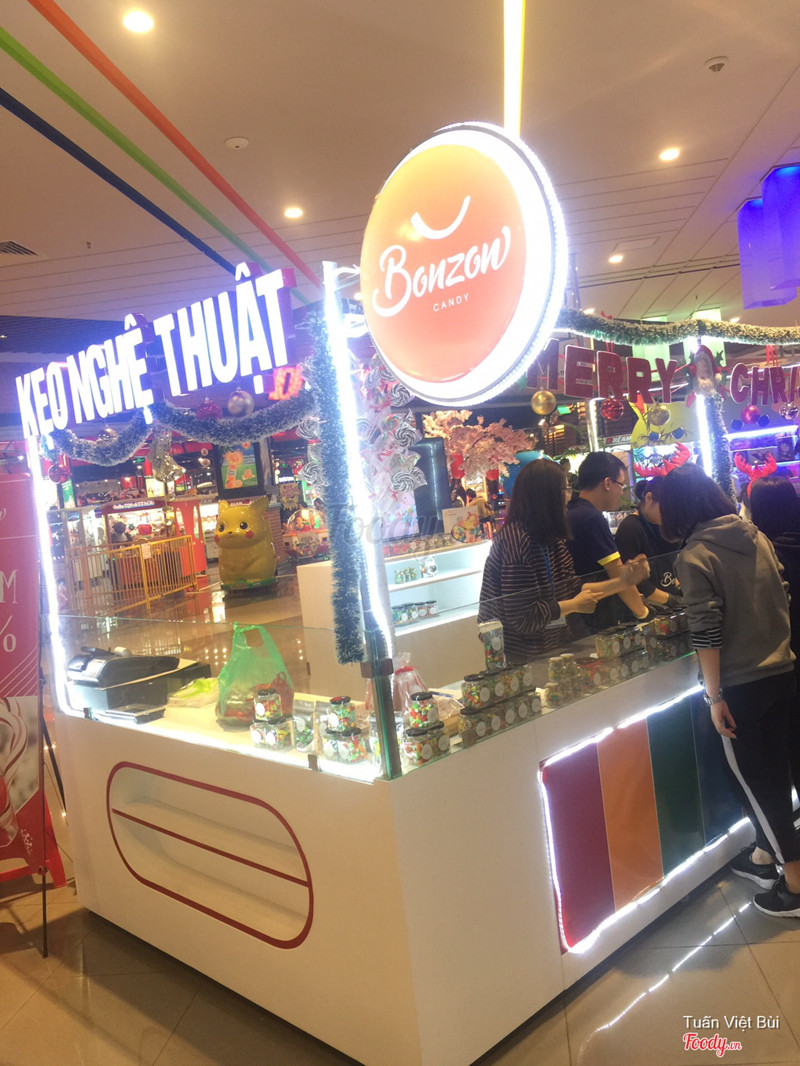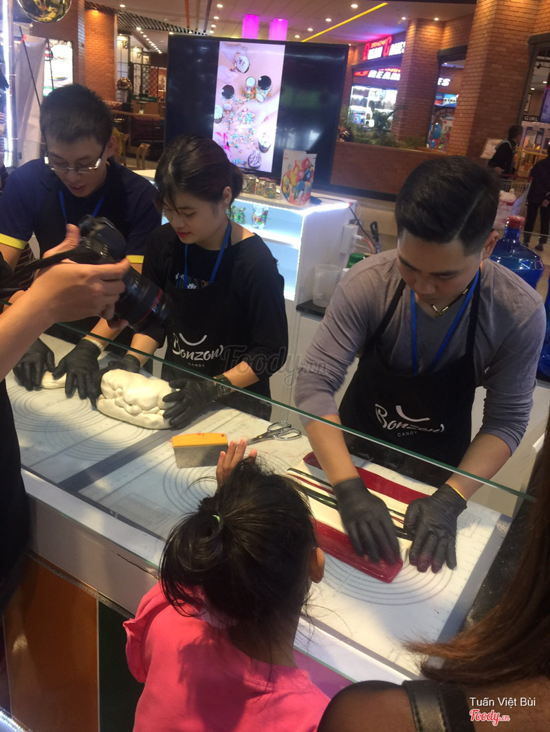 8.0Bonzon Candy - AEON Mall Long BiênQuầy bán kẹo handmade đã bán lâu rồi tại cơ sở Big C , nay đã có thêm ở Aeon Mall Long Biên. Các bạn nhân viên ở đây sẽ đứng biểu diễn làm kẹo từ khâu nguyên liệu đến thành sản phẩm. Kẹo có rất nhiều hình dáng khá bắt mắt, hình trái tim, cây thông, vòng xoáy... Kẹo ăn vị thơm ngọt rất dễ ăn, để ngoài cũng lâu bị chảy. Kẹo có bán theo que hoặc theo hộp để phù hợp làm quà tặng các dịp lễ. Hôm mình đến thấy có khá nhiều trẻ em đứng xem làm kẹo :)) ...Xem thêm