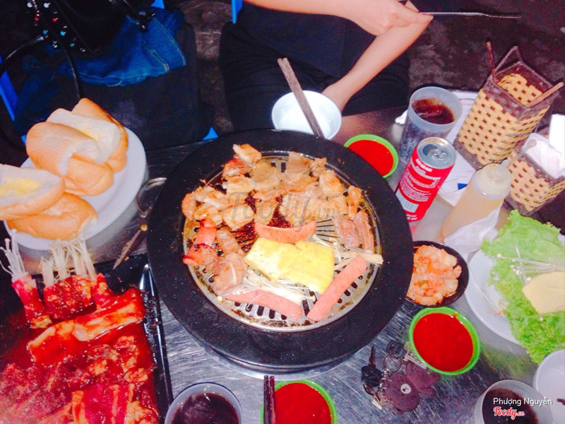 8.8Nướng gía bình dânMình đi 2 ngừoi gọi combo cỡ vừa 230k, 1 dưa chuột, 4 bia sài gòn, 1 bình trà đá tổng chi phí 325k. Về đồ ăn được tẩm ướp đậm đà, nước chấm ngon, quá xà lách, kim chi ăn ổn. Thịch có mấy loại áy, bò, gà, nầm, bò cuốn nấm, ba chỉ khá đa dạng, rau cuốn k được tưoi lắm nhưng với giá ấy thì cũng k đòi hỏi được. 2 ngừoi ăn lặc lè luôn, 3 ng rồi gọi thêm 1 2 đĩa là vừa. Nhân viên nhanh nhẹn ...Xem thêm