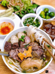 8.4Bún bò Huế O Linh[Bún bò Huế O Linh] 📍94 Yên Lãng - Đống Đa ⏰6am - 3pm 💲5k - 55k Bún bò Huế - 35-55k/bát Bánh răng bừa - 5k/cái Quán bún bò Huế mới mở gần nhà nhưng chất lượng ổn áp phết. Nước dùng ngọt thanh đậm vị bò chan đẫm lên nào chả cua, chả bò, chân giò ninh nhừ vừa tới, tiết mềm mướt cùng thịt bò mềm ngon. Sợi bún tươi nêm nếm thêm hành hồng, tỏi ớt và ăn kèm rau sống nữa cho đủ vị. 1 bát đầy đủ là no lặc lè lun, nếu còn chưa no nữa thì làm thêm đôi ba cái bánh răng bừa or bánh bột lọc nữa nè. Nc chấm chua ngọt vừa miệng phết. ...Xem thêm