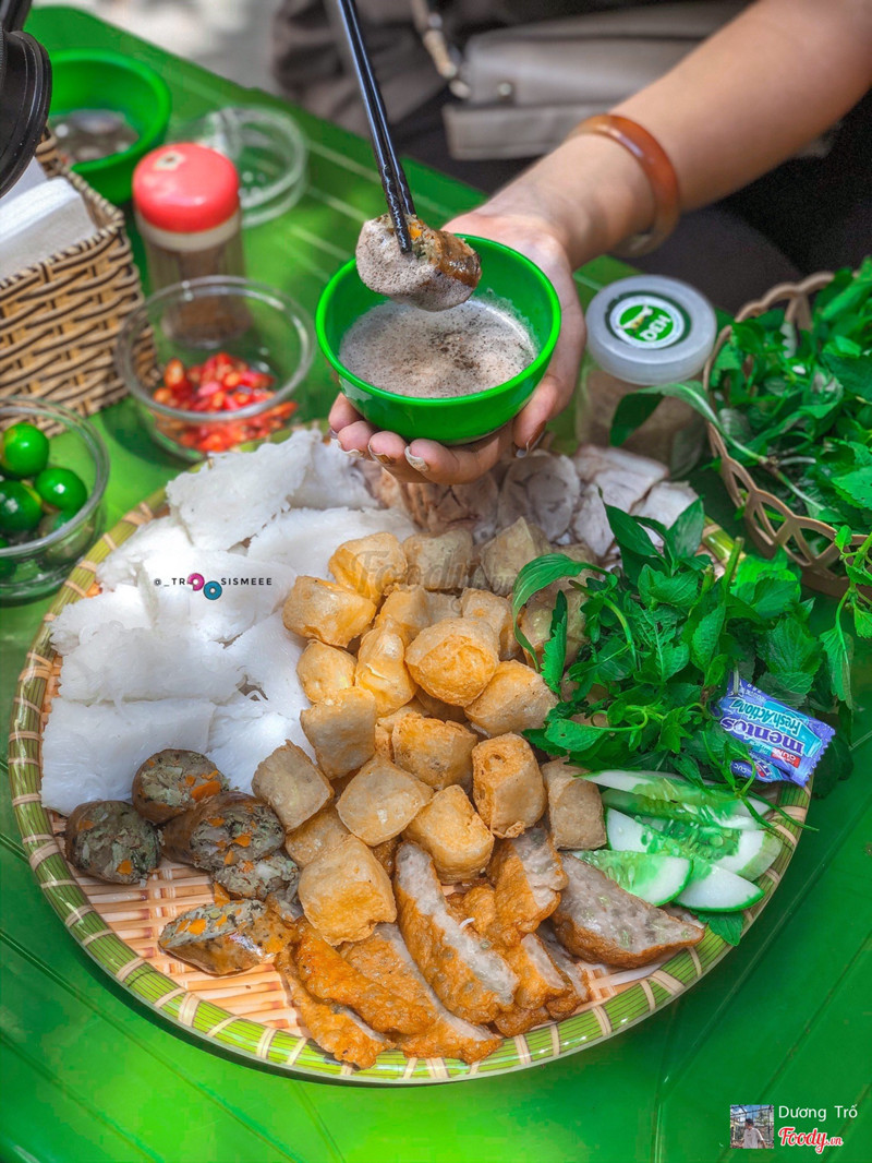 7.4Bún ĐậuQuán bún đậu có dồi sụn ưng nhất tớ từng thấy ☺️ Quán này hơi khó tìm một chút nhé, các đậu đi từ Lê Thánh Tông rẽ phải vào chỗ sau Nhà Hát Lớn nha. Một suất đầy đủ ở đây chỉ có 40k thui mà đầy đủ từ: Đậu rán giòn vỏ vàng rụm bên trong ngậy, mềm ẩm không bị quá khô; thịt luộc ở đây ngon đỉnh nè, vừa nạc vừa mỡ đúng thịt chỗ gót giò nên ăn thơm lắm. Chả cốm t thấy thì bình thường. Ngon nhất vẫn là dồi sụn ở đây nhá, không bị độn quá nhiều rồi còn có sụn giòn giòn nhai thích lắm. Tớ phải gọi thêm 1 đĩa dồi sụn (6k/chiếc) ngoài nữa ăn cho bớt thèm 🤣. Tớ thấy chỗ này ăn 2 người là no đấy 😜 Mắm tôm ở đây tớ thấy vừa miệng, được cho khá nhiều mỡ già nên chấm đẫm béo cực 😗. Gẩy thêm chút ớt, vắt thêm chút quất vào là chuẩn bài rồi hehe. Quán khá đông vào tầm trưa nhé, hết cũng sớm nữa nên lựa giờ qua ăn nha 😌. Phục vụ các cô các chú nên cũng thân thiện lắm, toàn lo ngồi chỗ nóng mà xếp quạt cho thôi 😁 ...Xem thêm