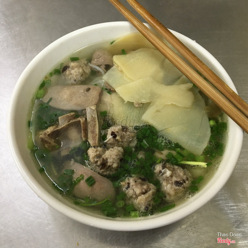 7.0Bún Mọc - Tạ Hiện薄切りタケノコのブンモック屋さん。 ブンモックとは豚肉団子の豚骨だしの汁ブンのことだそうで、ハノイ名物の麺の一種だとか。 こちらのお店のスープはとてもサッパリしていて、テーブルに置かれたライムやフレッシュチリや塩で好みの味に整えます。 優しい味付けでハシゴするにも丁度良いボリュームです。 この後、すぐ近くのニューデイ(コンビンサン)でも食事しました(笑) ...Xem thêm