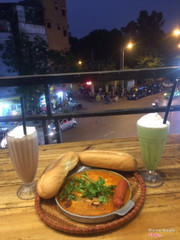 6.8Cafe trước cổng đại học kinh tế quốc dânBữa nay mình hẹn 1 ng chị, muốn đi ăn nem chua rán nên chọn quán nào trông teen teen tý, ai dè vô đây r ko có nem chua rán, nhưng thôi dắt xe vào rồi ko lẽ lại đi. Menu thì nhiều mà hỏi món nào cũng kêu hết 😥 Cuối cùng bọn mình gọi matcha kem, chocolate cookie, và 1 suất bánh mì chảo lớn. Tổng 105k 🌮bánh mì chảo ăn tàm tạm, lạp xường hơi có mùi, chắc do để lâu quá, ăn cùng cục sao đó. Mấy cái khác như xúc xích, pate trong chảo thì bt, nói chung thì chảo này tạm tạm ăn được. 🍹matcha kem uống bt, hơi nhạt ko đậm vị matcha lắm 🍹chocolate cookie thì toàn vị chocolate ko thấy tý vị cookie nào. ☝️khi nhân viên bê đồ lên, mình bảo họ mang cho mình tương ớt, họ dạ vâng r ko mang, và mình phải chạy xuống lấy. ☝️địa điểm dễ tìm mặt đường trần đại nghĩa, trước cổng đhktqd. 👍chỗ bọn mình ngồi rất thoáng, thoải mái ...View more