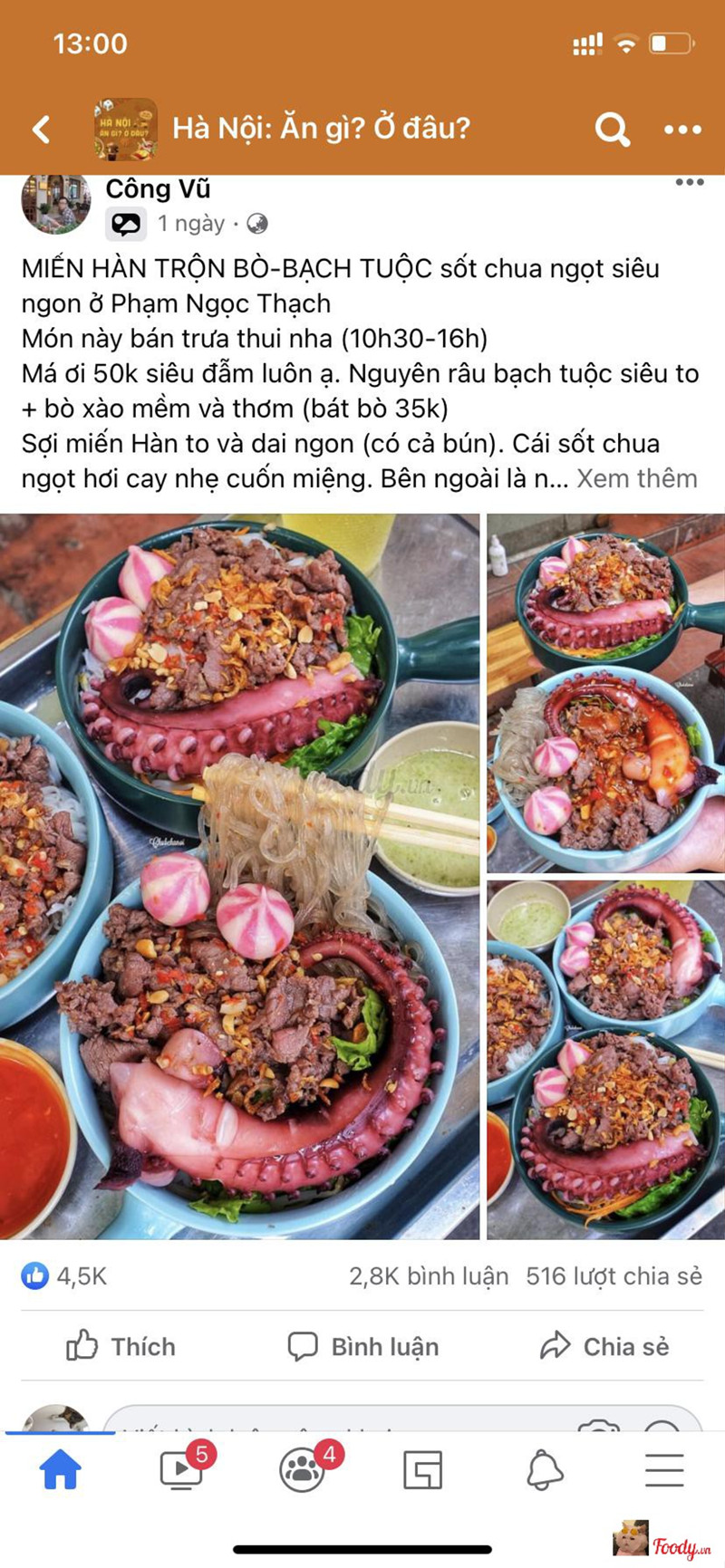 7.2Tạm ổn, nên thửAi mua vì đọc cái review kia thì comment cái nha 😆 Phần nhìn thì được khoảng 8 điểm so với ảnh. Miến Hàn sợi to ăn khá hay ho, sốt chua ngọt ngon ngon, bạch tuộc cũng ok, bò ướp cũng vừa miệng. Với mức giá 55k thì mình thấy ok. ...Xem thêm