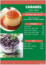 7.2Caramen Kim Yến - Hàng ThanNgon Đây vốn là 1 trong những quán ưa thích của mình khi ra Hà Nội. Ở Sài Gòn cũng có nhiều món ngon và đặc biệt, nhưng bánh flan (caramen) kiểu Hà Nội mình thích hơn loại bán trong Sài Gòn. Ăn ngon quá nên quên chụp hình luôn. Bánh to, mềm mịn, ăn như tan trong miệng. Vị thơm dịu, ăn không hay ăn với topping đều ngon hehe. Quán có bán thêm cực nhiều món ăn vặt, nhưng mình vẫn thích caramen nhất. Có nhiều loại chè ăn cũng ngon. Chỗ ngồi bên trong nhà thoải mái. ...Xem thêm