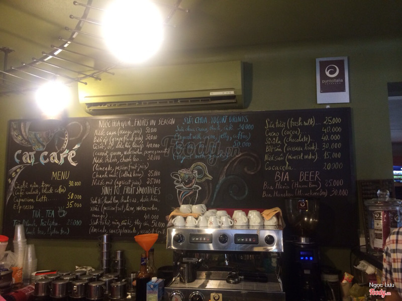 6.8Cat Cafe1 quán cafe khá bắt mắt nên đã lôi kéo mình vào đây 😍 ✔️ Vị trí: Quán nằm ngay đoạn đầu Châu Long, gần Phó Đức Chính í ạ 😁 ✔️ Đồ uống: ở đây mình thấy k chỉ có cafe đồ uống mà còn có cả đồ ăn các kiểu như phở. Đồ uống cơ bản, k có món gì nghe nổi bật. Mình lấy thử 1 nước mơ thì uống ngọt quá. Bị ngọt sắc đến nỗi ai thử cũng phải kêu lên í. Được cái chất lượng ở chỗ cái ngọt đó k phải chỉ là ngọt đường mà còn do ngọt từ quả mơ ra nên khá thơm, lúc sau ăn quả mơ trong cốc thấy k còn vị gì vì bị vắt hết ngọt luôn mà ☺️ ✔️ Giá cả: Mình thấy giá cũng bình thường. Cốc mơ kia là 25k. Cơ mà bất công ở chỗ mua mang đi bị tính thêm 5k luôn 😒. Thành ra mua mỗi cốc nước mà 30k lận 😔 ✔️ Không gian: Quán có không gian ngồi cả bên ngoài và bên trong khá đẹp. Năgm ở đoạn đường vắng lại máy bóng câu xanh nên ngồi ở đây rất thư giãn. Decor quán lạ và hay lắm nhé ☺️ ✔️ Nhân viên: Bác chủ quán già già thì có vẻ khó tính. Nhưng có anh gì đó k biết là quản lý hay con trai thì thân thiện và nhiệt tình, cởi mở lắm luôn. Các nhân viên khác thì k thân thiện lắm. 😅 ...Xem thêm