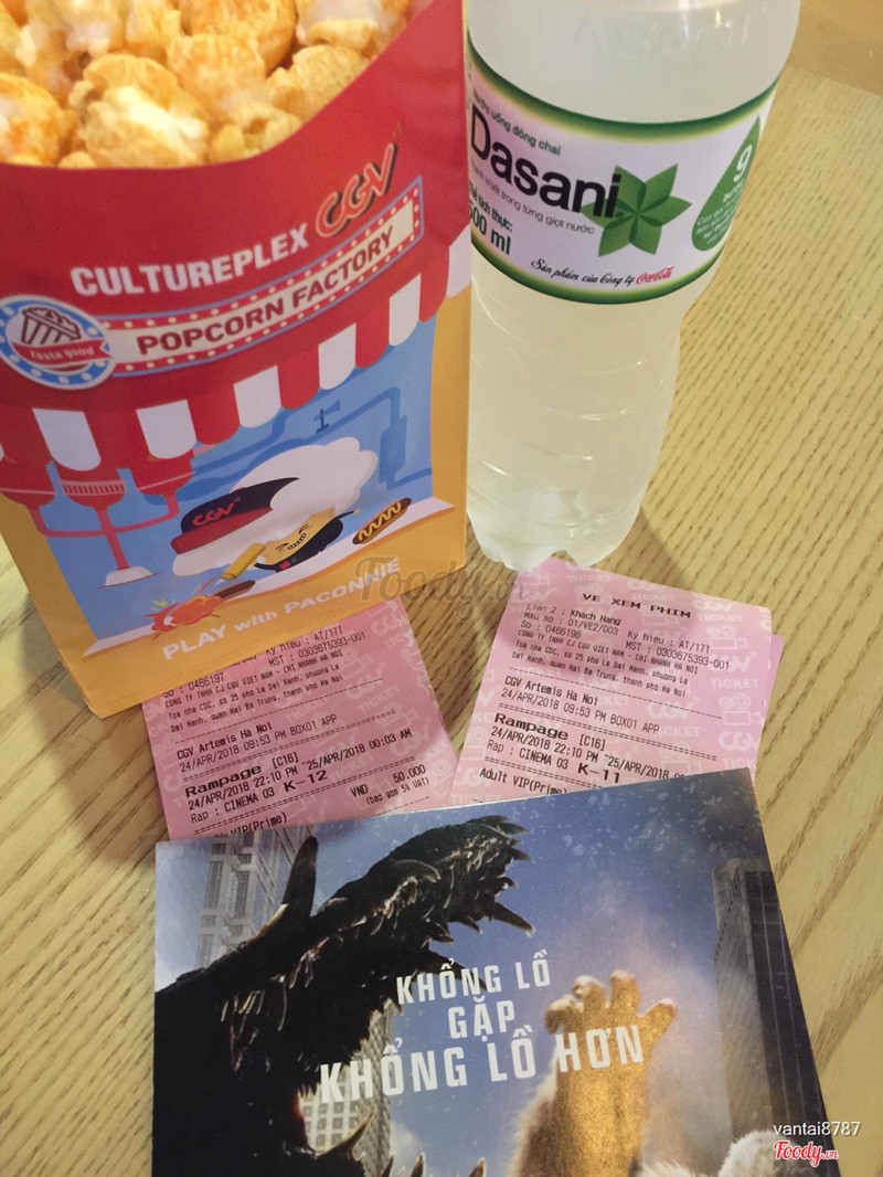 7.8CGV - Artemis TowerHôm nay mình đi xem phim với bạn Mình mua 6 vé giá chỉ có 50k 1 vé thôi Bắp rang bơ ở đây cũng khá rẻ 2 hộp coca và 1 hoppj bắc rang bơ chỉ có 102k thôi Mình gọi 1 hộp bắc rang bơ caremen ạ ăn khá ngon và bắc cũng có nhiều carmen nhưng nhanh bị ủi mình để có 1 tiếng trg rạp thôi mà đã bị ủi rồi Còn bắc phô mai ăn mặn mặn cũng khá ngon Nói chung là khá rẻ Nhân viên không nhiệt tình lắm ...Xem thêm