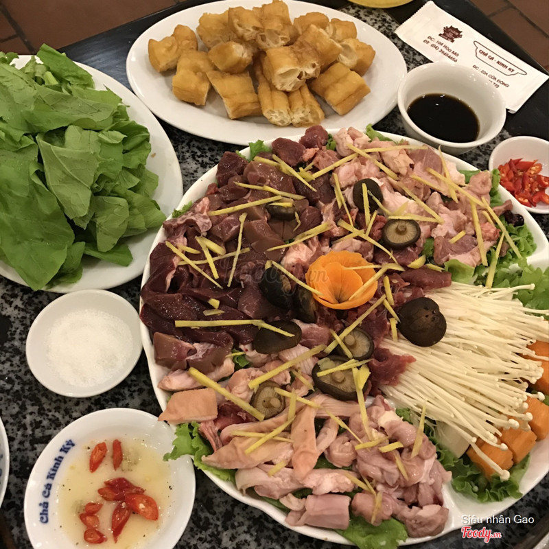 8.0Chả Cá Kinh Kỳ - Hòa MãNhà hàng nằm ở phố Hoà Mã gần đoạn giao phố Huế. Quán to, rộng rãi, trang trí tgeo phong cách Hà Nội cổ xưa. Quán bàn ghế sạch sẽ, lịch sự, nhân viên thân thiện. Nhà hàng menu tập trung là chả cá, lòng và lẩu đầu cá. Nhà mình 4 người gọi 3 suất cá, 2 suất lòng là no rồi. Chả cá cùng hành thì là bày trong chảo được nhân viên tận tay đảo nóng. Ăn kèm là bún, lạc, mắm tôm, hành ngâm rất là ngon. Chả cá tẩm ướp đậm đà, màu vàng bóng bảy, mềm thơm. Lòng cá mình thích nhất vì dai giòn cắn rất sướng. ...Xem thêm