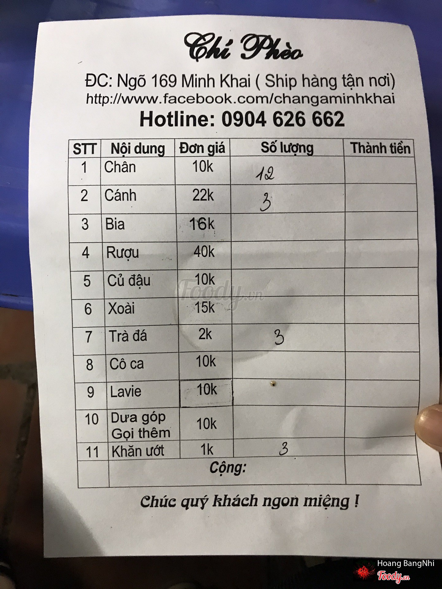 Ghi chú đặt bàn