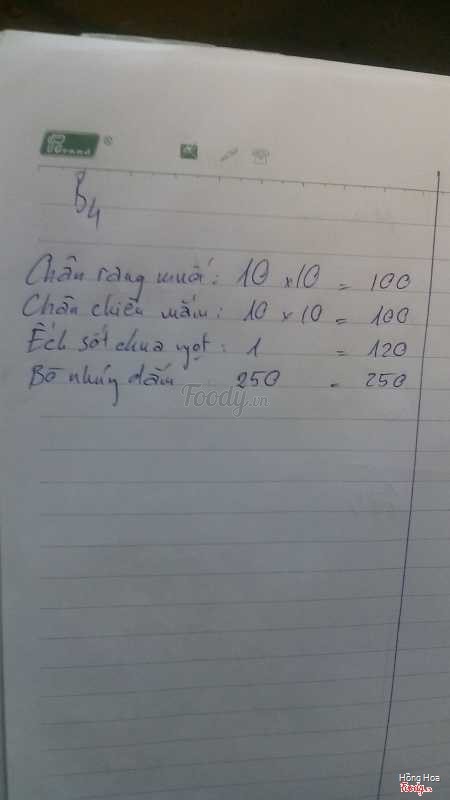6.6Chân Gà Chiên Mắm - Hàng Bún- Quán khá nhỏ, kiểu vỉa hè nhưng khá sáng sủa, ngồi bàn ghế nhựa; - Đồ ăn lên hơi chậm, nhân viên phục vụ ổn. Ở đây còn nhận ship đồ đến 3h sáng. - Chân gà chiên mắm ở đây đặc sắc nhất, ăn ngon, ngoài ra còn có chân cánh gà rang muối, ếch chiên bơ tỏi ăn ngon không kém, thơm, da ếch giòn, thơm mùi bơ tỏi. Thích hợp ăn nhậu. ...Xem thêm