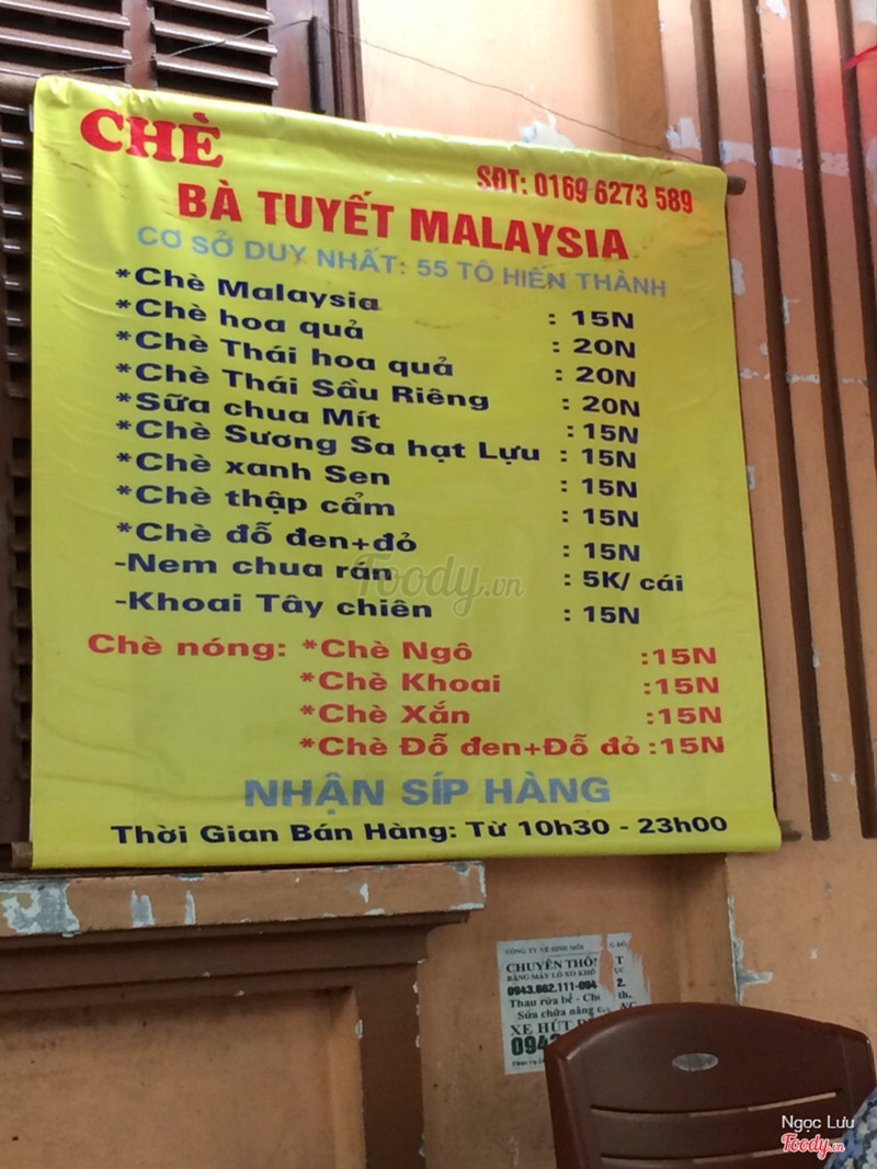 8.4Chè Malaysia Bà Tuyết- Vị trí: nằm đầu đường Tô Hiến Thành, gần ngay chỗ giao vs Bà Triệu, quán bán ngồi chủ yếu ở vìa hè, rộng rãi, thoáng mát - Bác chủ quán thân thiệt, nhiệt tình giới thiệu về chè Malaysia do mình lần đầu ăn - Chè Malaysia vị thanh mát, hợp với những bạn ko thích ngọt, nguyên liệu gồm các loại đậu, trân châu, thạch, bên cạnh đó là hạt chỉ có trong chè malay thui đó và đặc biệt là nước bắc malay đc bác trực tiếp làm ra theo đúng kiểu của ng malaysia (giá 15k) - Ngoài ra còn có Hoa quả dầm: 20k, chè sầu: 25k, và nhiều loại chè khác có giá 15k ...Xem thêm