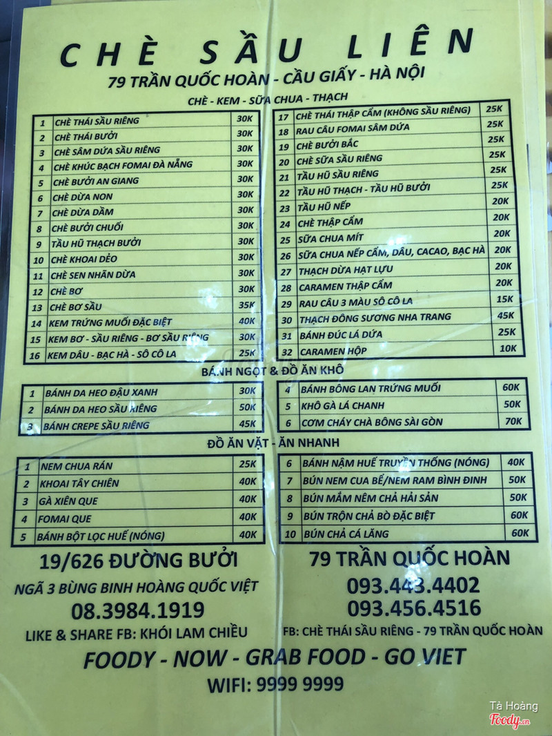 7.0Chè Sầu Liên - 79 Trần Quốc Hoànchè sầu liên thì quá nổii tiếng rồi mình rất thích loại chè này giá cả chung tầm 30k/ bịch minh gọi ship đến nhnah nhẹn và đúng giờ lắm chè này có sầu riêng ăn cực ngậy và béo có topping sần sật ăn mát lạnh đã ghê ngoài ra có mít nữa, nói chung đây là mòn chè best mà mọi người nên ăn tuy nhiên có người dị ứng sầu riêng ko nên ăn bà chị chỉ vì thấy thơm quá ăn xog bị kiểu trúng hay sao mà mặt mũi lừ đừ riêng mình vẫn thích ăn lắm ...Xem thêm