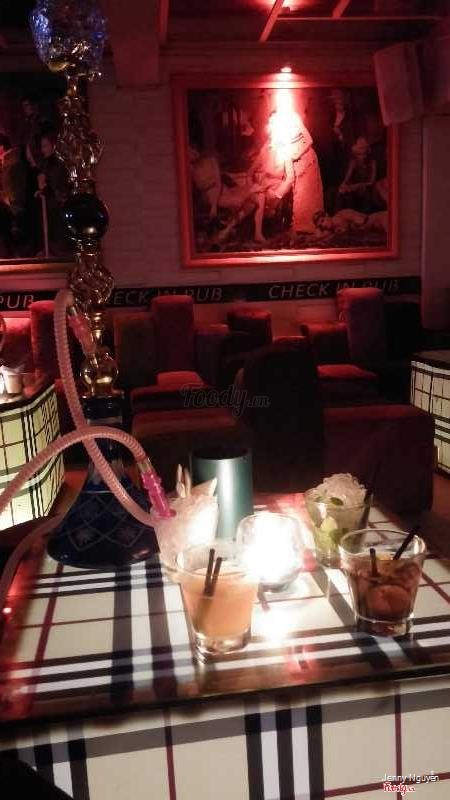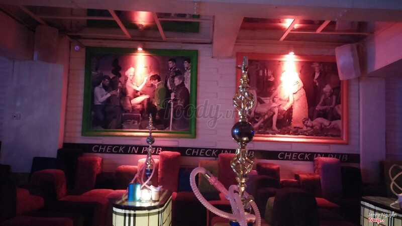8.6Check in check inCuối tuần buồn chán lên check in pub rất chuẩn. Ngay mặt phố Nguyễn Hữu Huân, phố cổ luôn, dễ tìm vì biển quá bắt mắt luôn. Mình không thích mấy bar quá rộng và ồn ào vì sẽ rất nhiều lứa tuổi đến, cảm thấy bị tạp nham. Đúng nghĩa là pub, nhỏ xinh 1 tầng, bàn ghế sắp xếp khá hợp lý, có dãy salon ngồi dài dọc quán và cả những ghế đệm tròn ngồi xung quanh, tuy nhỏ nhưng ngồi cũng thoải mái. DJ thì tít bên trong gần khu quầy bar. Bàn nào cũng bày sẵn shisha, nếu dùng thì nhân viên sẽ order. Có khoảng 3 bàn ngồi bên ngoài cửa quán, dành cho nhưng ai không thích ồn ào mà chỉ thư giãn cafe ngắm phố phường. Mấy đồ uống pha rượu khá ngon, mình thích vị vodka mix orange của quán. Mojito vừa mang ra thấy hơi bị hốt vì có một tảng đá xay to oành ngập cao hơn cả miệng cốc. Nhạc ở đây đánh siêu hay, toàn bài mới và hot cả. Cơ bản đối tượng khách cũng hiện đại, trẻ trung và lịch sự nên khá ưng. Nhân viên phục vụ nhiệt tình, niềm nở. Nếu thích sôi động hơn thì qua check out có tầng 2 nhạc mạnh hơn. Còn không thi thoảng đổi gió bên này thì khá oke. ...Xem thêm