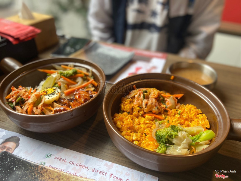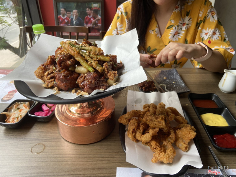 8.4Ẩm thực Hàn QuốcQua quán ăn từ ngày đầu tiên khai trương nhưng mấy hôm trước đến thì cảm thấy chất lượng hơi bị đi xuống. Hôm đầu mình ăn gà rán ở đây ngon lắm, vị gà sốt xì dầu siêu đỉnh, ngòn ngọt mặn mặn ăn cùng tok sốt xì dầu ali hợp hợp. Một suất gà 199k còn có thêm cả các loại rau chiên. Hồi đầu ăn món này ngon lắm mà lần gần nhất gà bị bở, da gà ngấm mùi dầu kiểu chiên đi chiên lại không được tươi:( Hơi buồn Da gà rán hơi dầu mỡ, không đặc sắc lắm vì hơi nhiều bột. Quán có 3 loại sốt ăn kèm là sốt ngọt, sốt cay và mù tạt vàng. ...Xem thêm