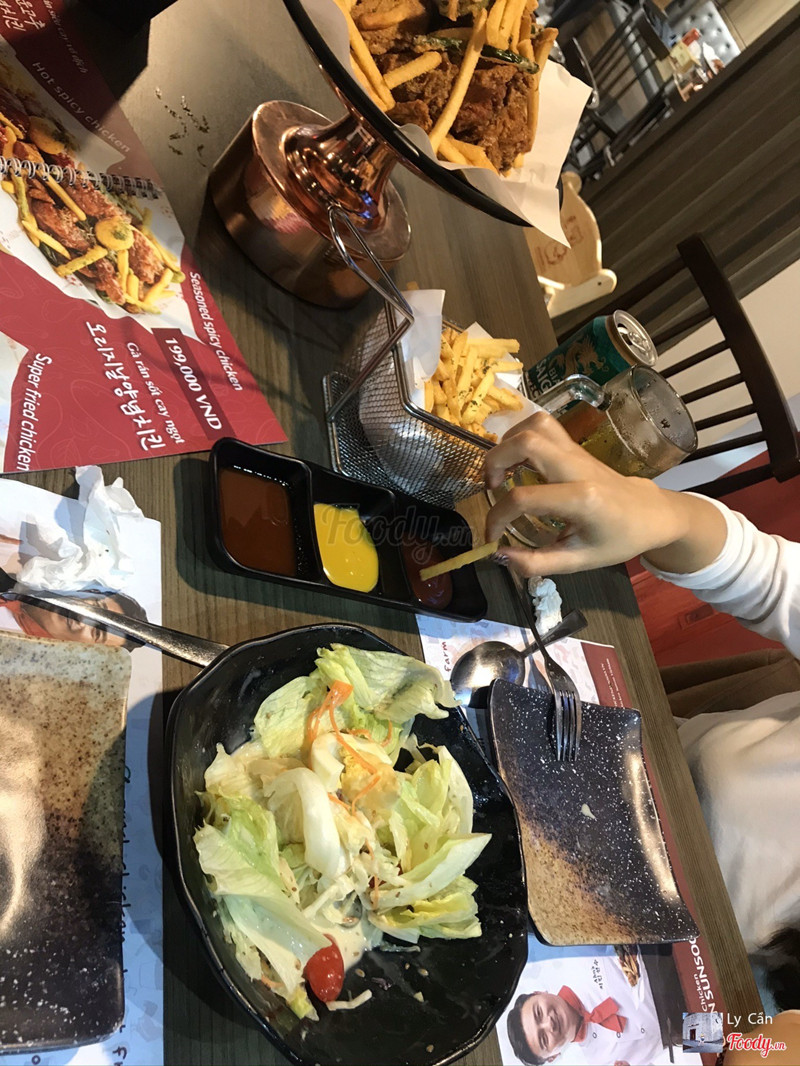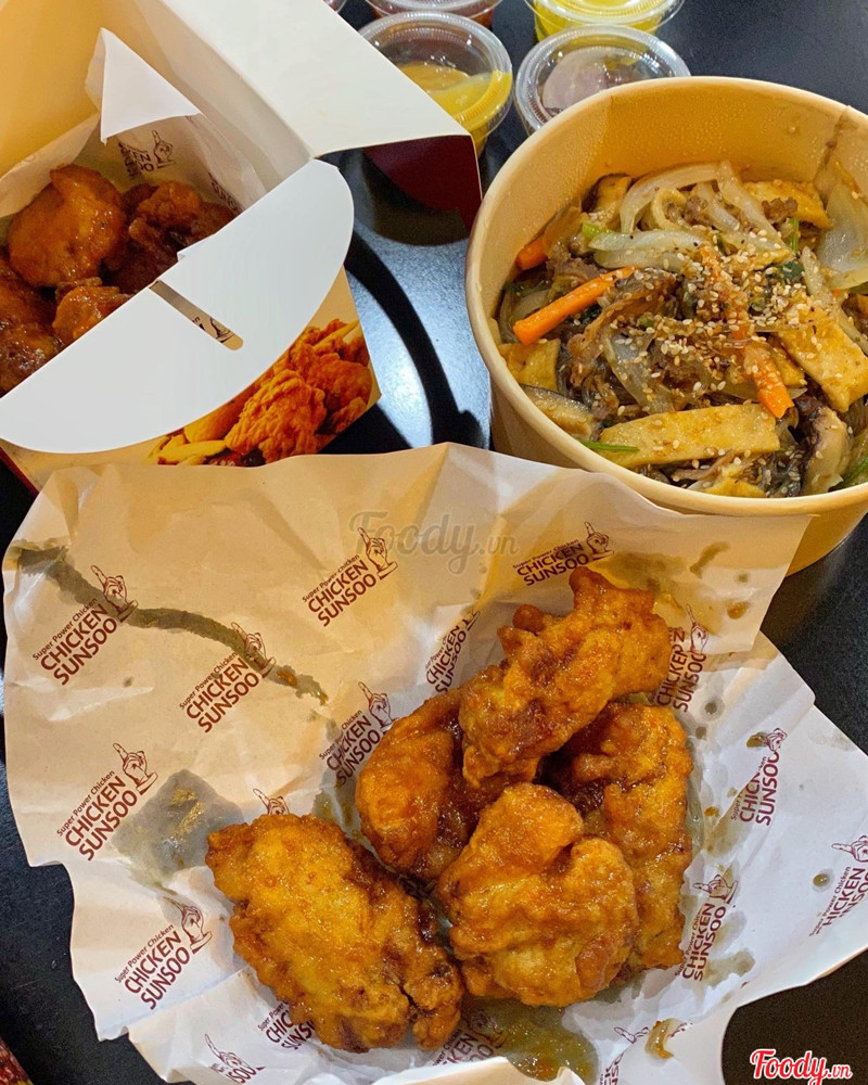 8.2Chicken Sunsoo***-***Hôm nay chúng mình đi ăn thử tiệm gà Hàn Quốc nè, thấy bảo đây là 1 trong những cơ sở của Chicken Sunsoo bên Hàn luôn đó. Nghe xịn ghê. Bọn mình đi đông nên gọi nhiều món lắm nè, được thử qua các món và nhận xét của mình là ngon như review của các bạn nè hihi. Gà rán có vỏ ngoài giòn và lớp ngoài của gà thơm ngon, miếng gà mềm thơm, thớ thịt mướt chứ không bã, thêm nữa là sốt cũng vừa miệng ngon miệng lắm luôn nè, salad ăn bình thường thôi. Đến đây nhất định phải thử hết các loại gà nha mọi người, nên đi đông để ăn được nhiều món nè. ...Xem thêm