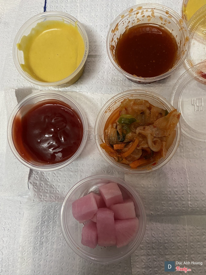 7.4Chicken Sunsoo***-***Mùnh gọi giao hàng Shop đóng đồ khá cẩn thận và trông rất sang chảnh Đây là 3 loại gà: gà rán, gà rán nước tương, gà nướng tỏi Phần gà nướng tỏi nhìn hơi giống gà kiểu*** Gà nước tương hơi đen Gà rán là loại ngon nhất Đi kèm có 3 loại sốt chấm: tương cà, tương cay ngọt, mù tạt vàng , củ cải muối*** kim chi ...Xem thêm